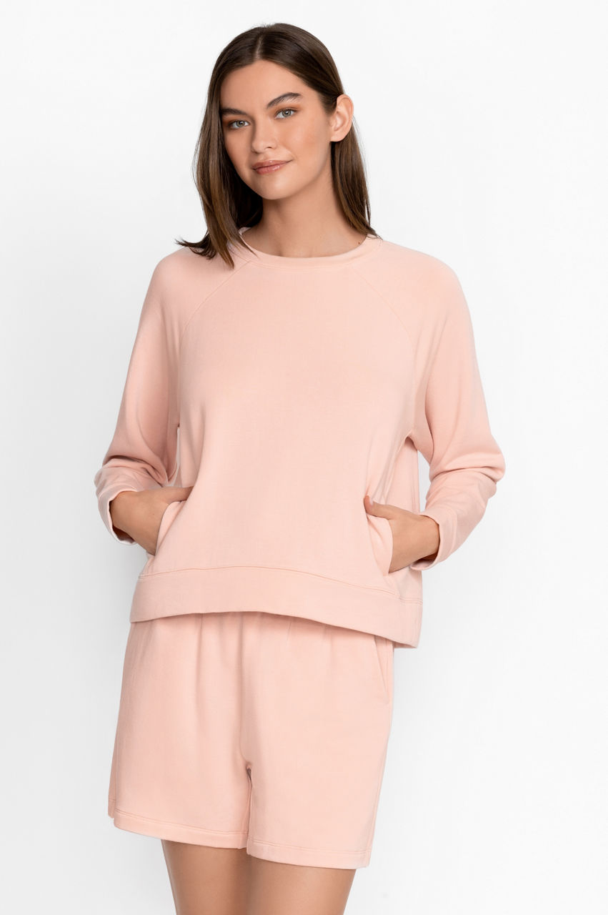 Forever a downtime basic, the Long Sleeve Crew Pullover is an elevated rework of a casual layer. Adopting an eye-catching rose tone, this pullover is designed from a modal blend with a touch of stretch, a comfortable fabric for leisurely activities and cozy moments at home. Finished with a round neck and long sleeves, this pullover can be paired with the matching shorts for a modern take on loungewear.