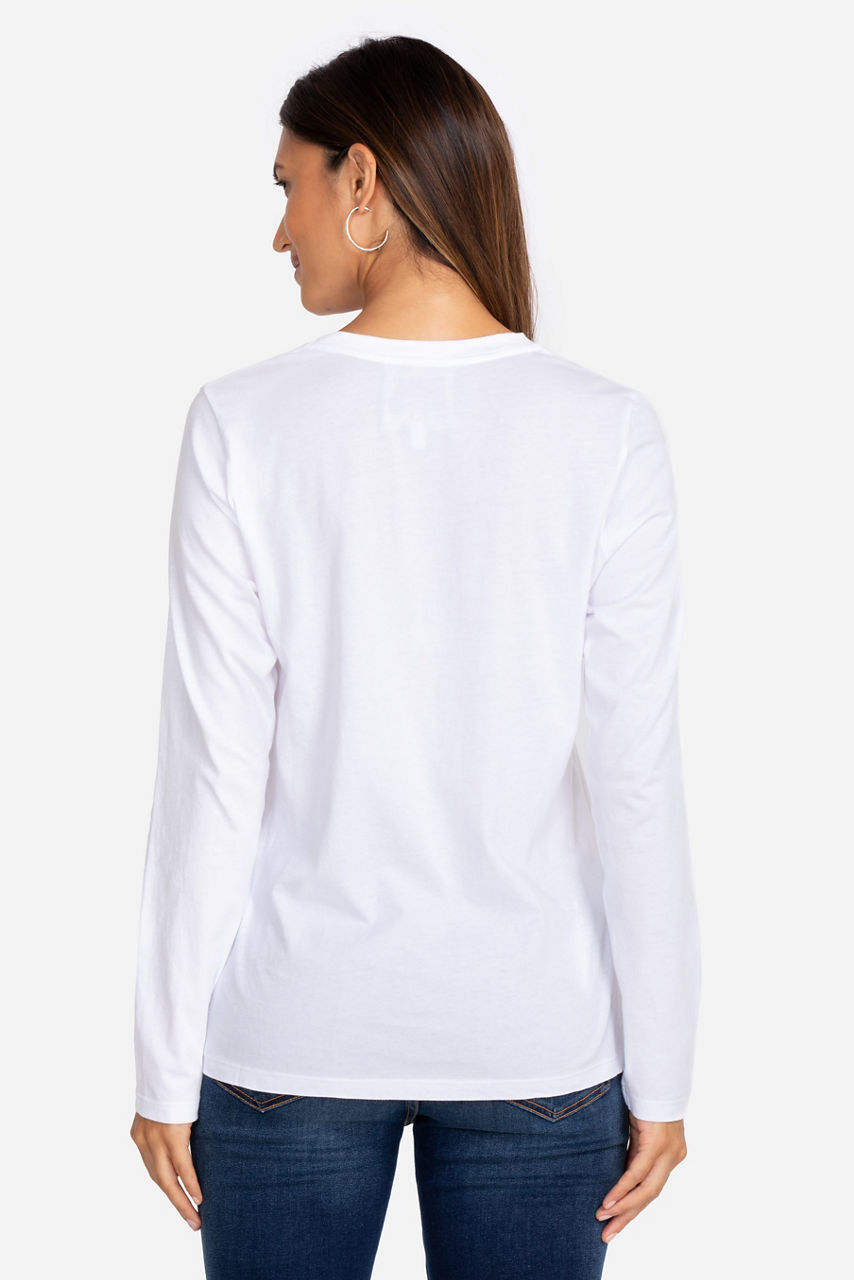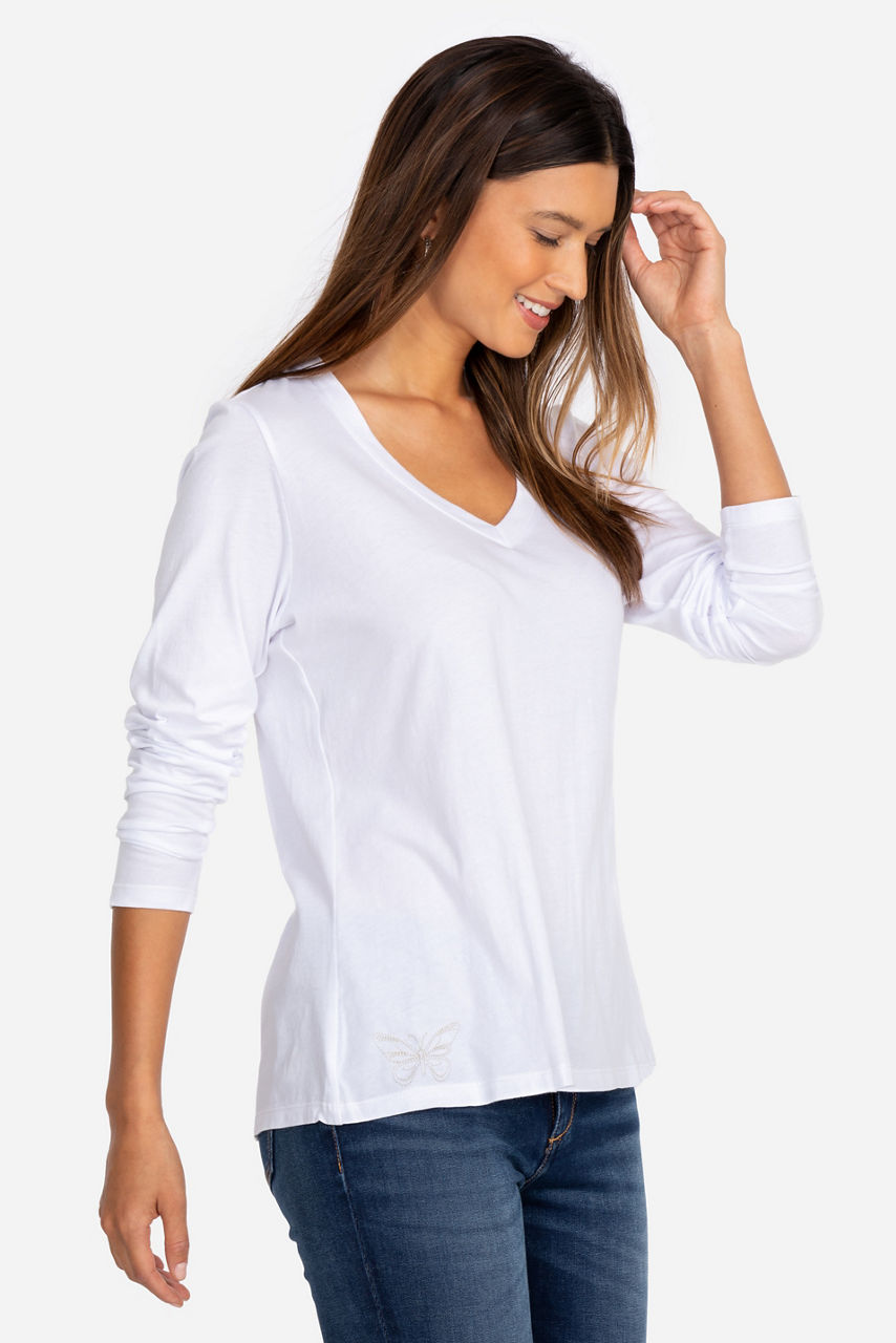 The gorgeous fit and on-trend design of our Long Sleeve V-Neck Layering Tee is perfect for everything from sweet date nights to outdoor parties. The elegant construction and ultra-soft fabrication add a chic touch of whimsy to any look. This better-than-basic boho blouse pairs well with everything from white denim to embroidered leggings.