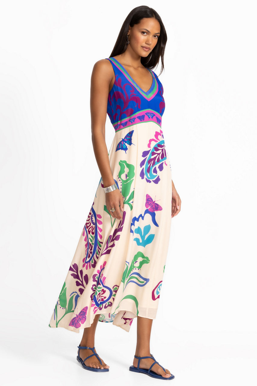 Embellished with a bold floral pattern and rich saturated color, the Lottie Maxi Dress perfectly combines comfort and elevated style. Featuring a V-neckline and zip closure, this stunning sleeveless empire-waist dress is finished with a flowing high-low hemline. Pair with strappy heels and oversized sunglasses for a dramatic afternoon look.