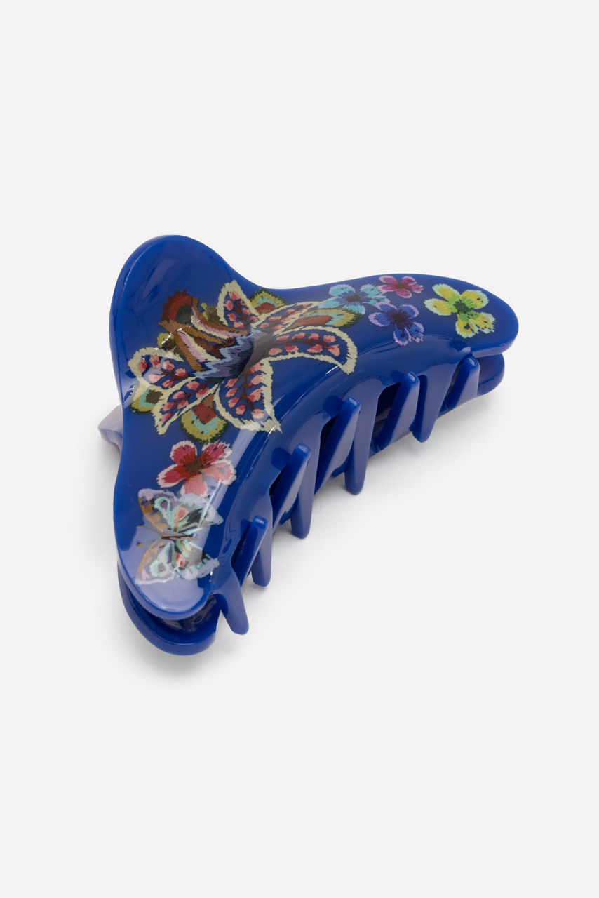 Reminiscent of a bygone era, the Lotus Hairclip charms with its vintage aesthetic and vibrant color palette. Fusing function with finesse, this hairclip is made from a sturdy material with secure claws and features an antique floral pattern that stands out against a blue backdrop. Use this hairclip to create a feminine half-back style.