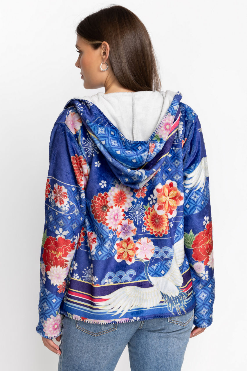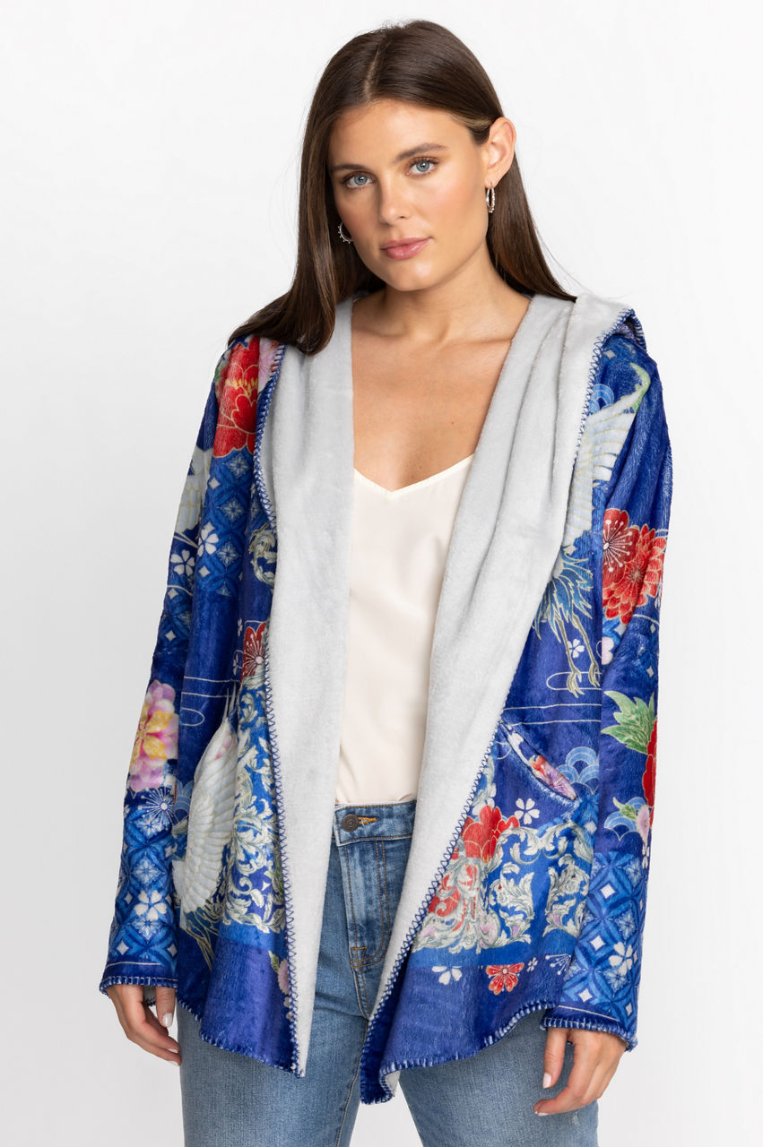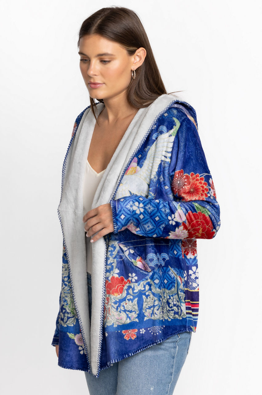 Displaying bold floral patterns on a cozy layering piece, the Louie Sherpa Jacket will keep you warm as temperatures start to cool down. Featuring an attached hood and elongated front panels for a unique silhouette, this jacket is a must have for the transition between seasons. Layer over your favorite tee and jeans for a casual look with a polished finish.