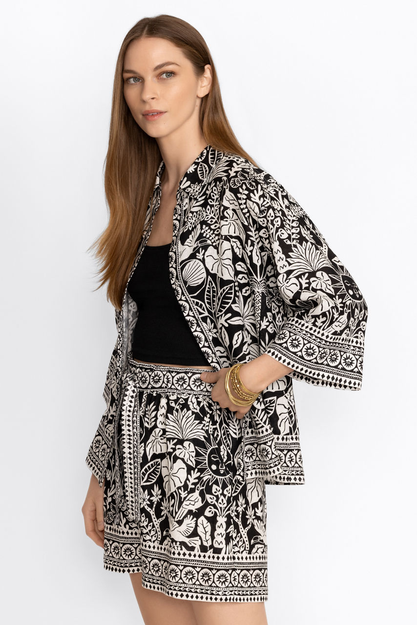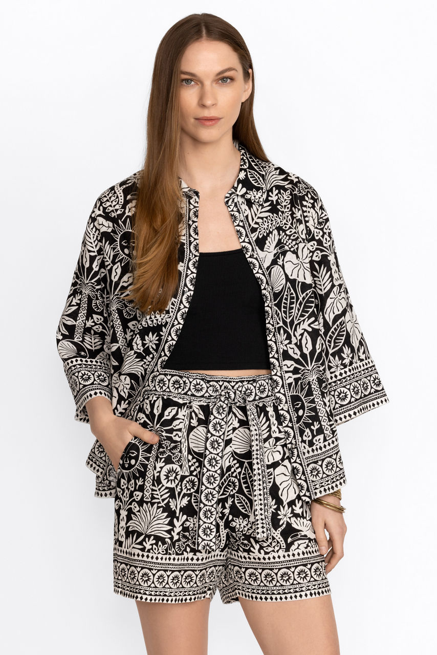 The Luciana Belted Shorts are crafted from 100% breathable linen fabric and embellished with a mesmerizing floral pattern. Featuring an elastic waist with fabric tie belt, these shorts are finished with a contrasting border at the waist and hemline. Pair with a white silk cami and wedge heels for a polished look that's perfect for dinner by the oceanside.
