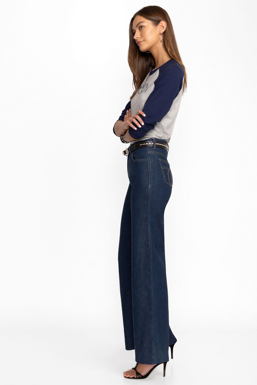 The Lumiere Wide Leg Jean offers a perfect blend of comfort and style with its wide-leg design and vintage wash. These jeans feature a classic five-pocket style and a front fly closure for a secure fit. Whether you're dressing up or down, these jeans provide a flattering silhouette and versatile wear.