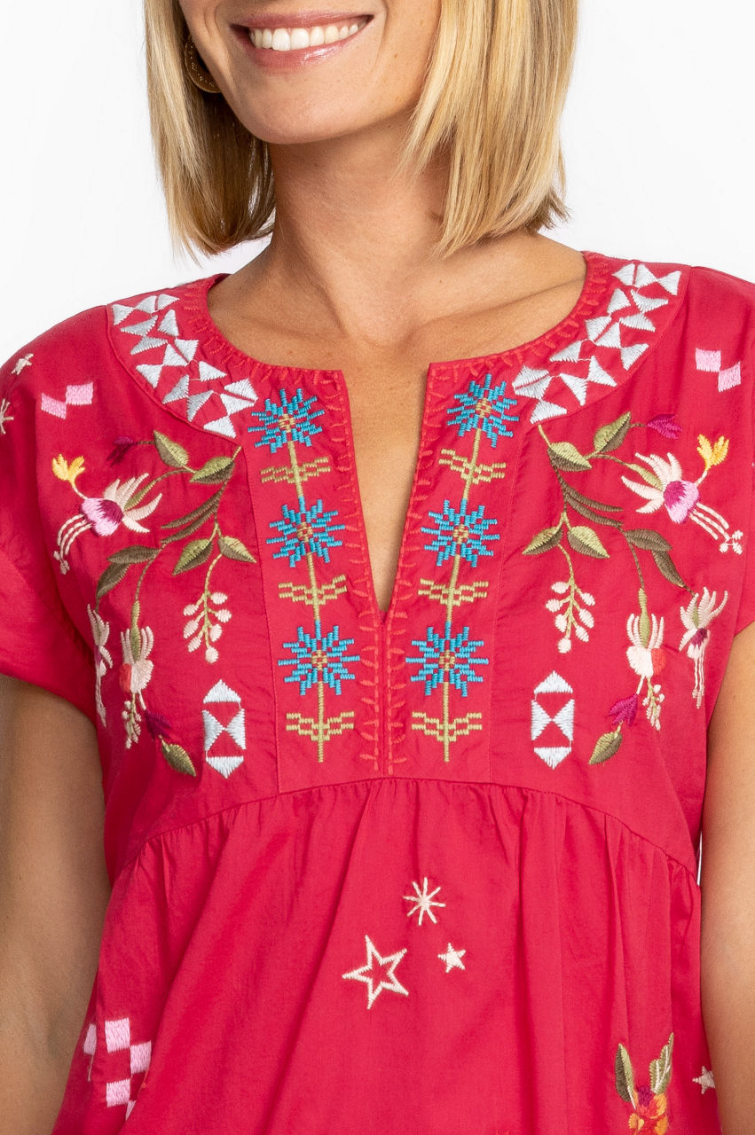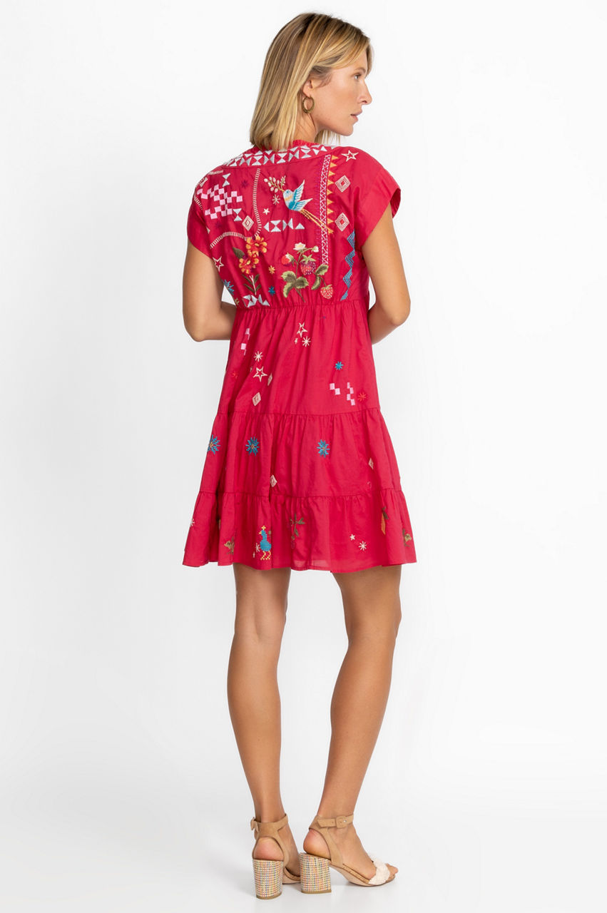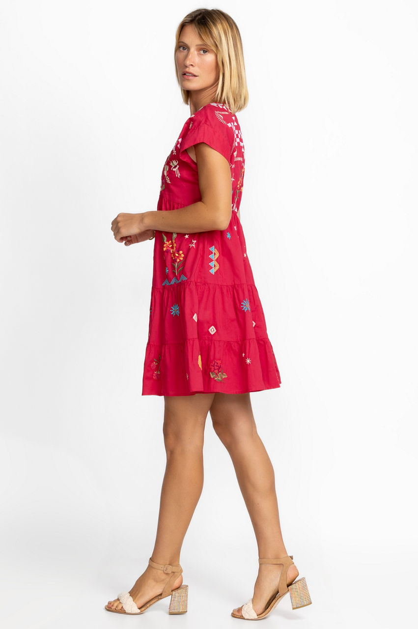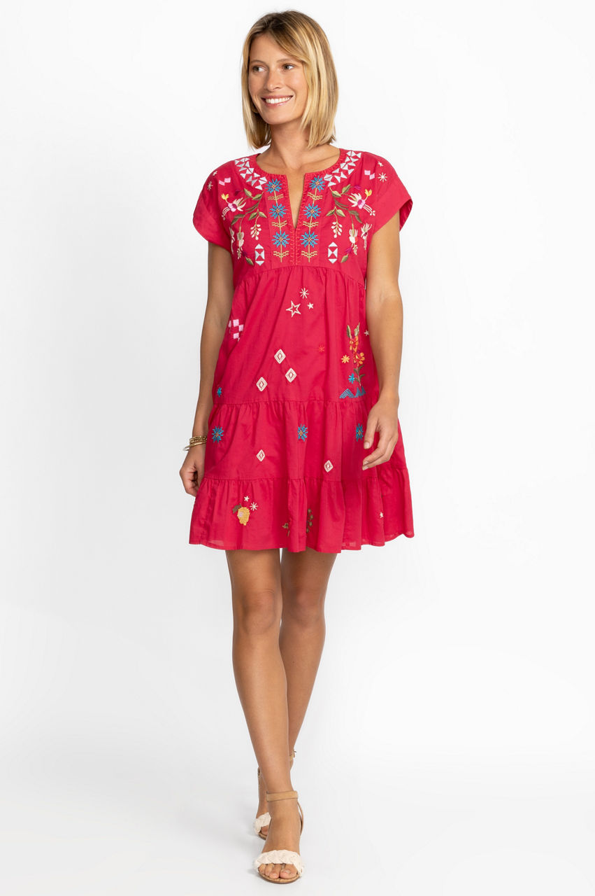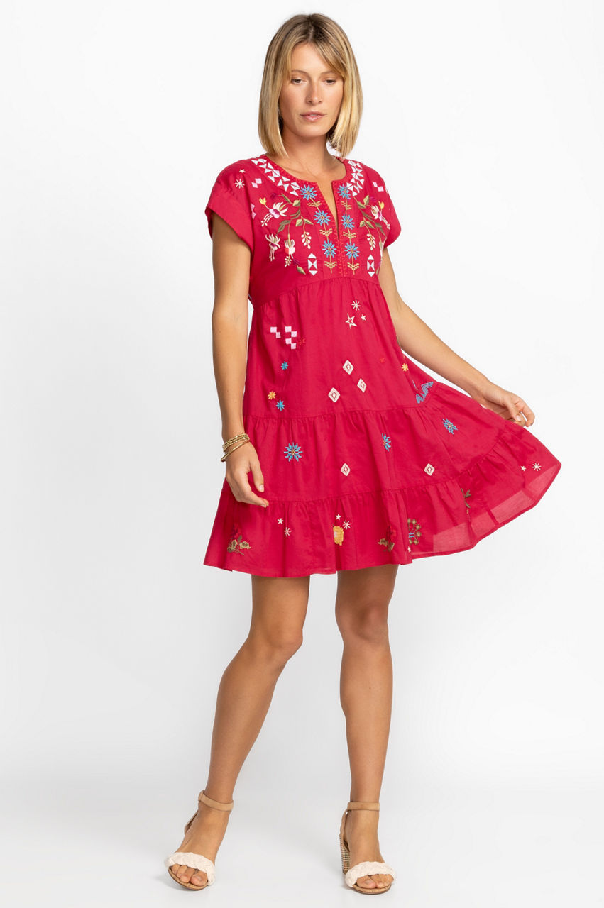 Evoking open spaces and gently rolling hills, the Lyonne Dolman Prairie Dress is a timeless look for day-to-evening dressing. Crafted from pure cotton, this dress features an empire waist and tiered skirt with delicate placement embroidery that brings it to life. Pair with sandals for a breezy look.