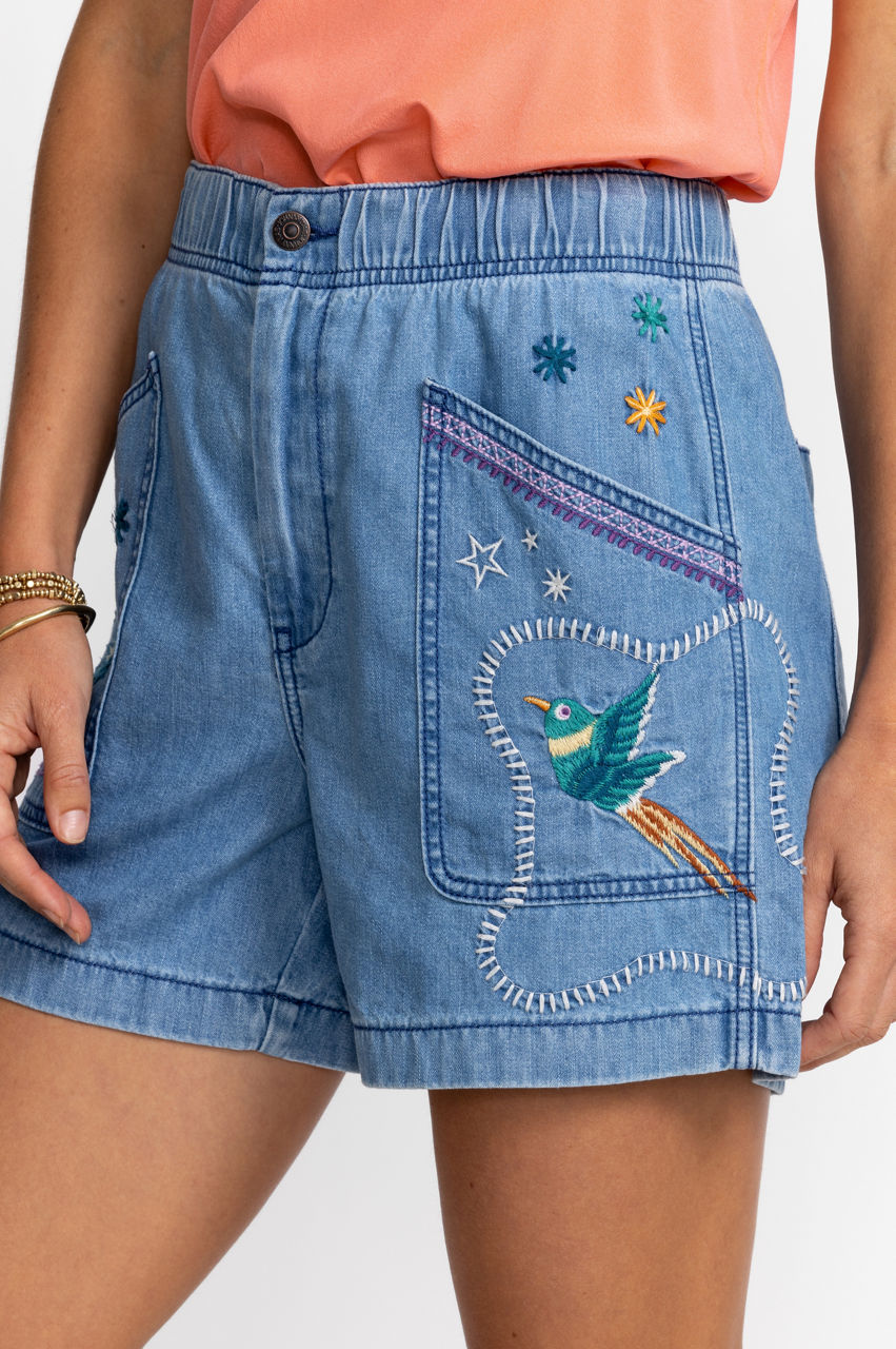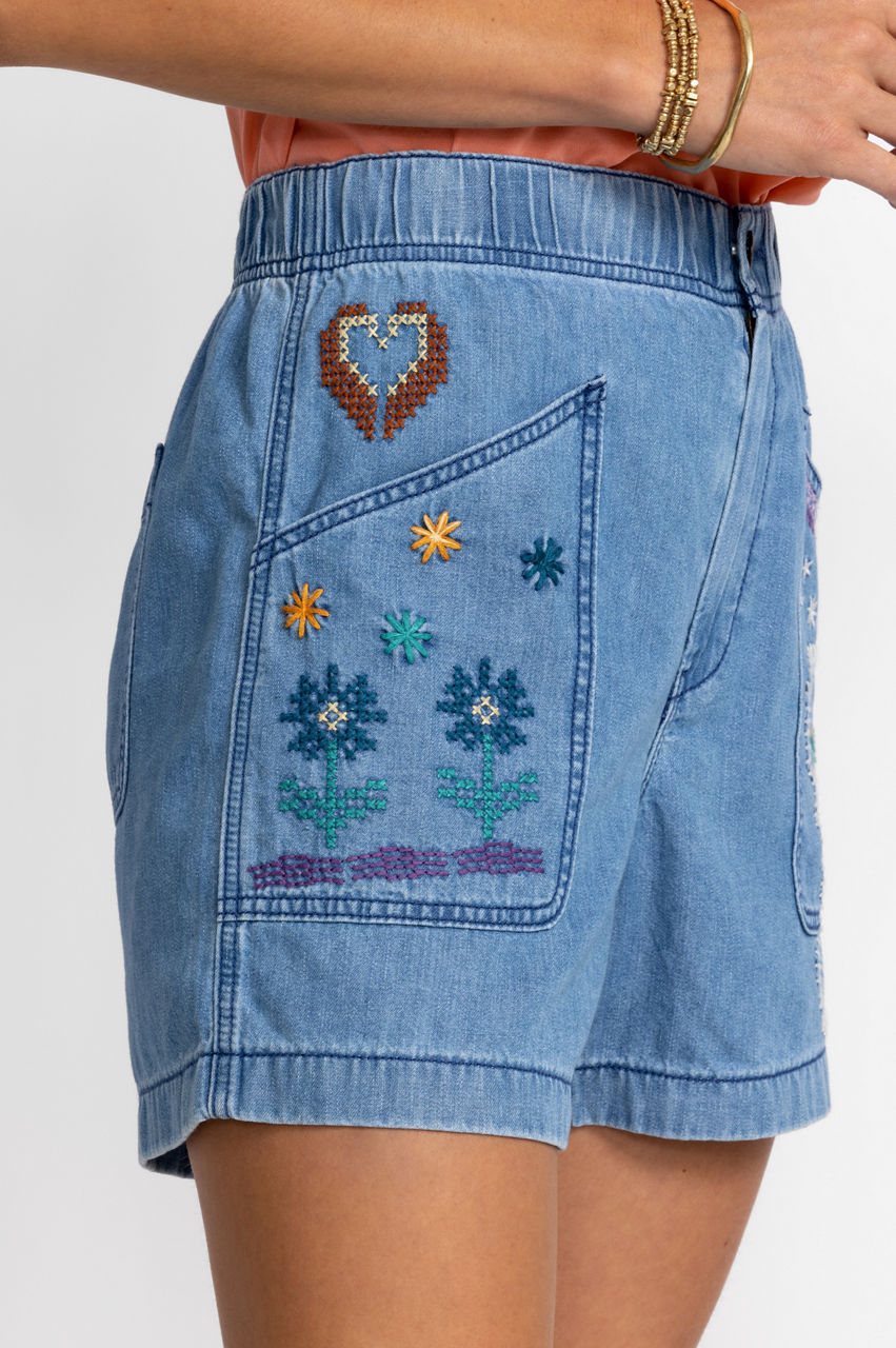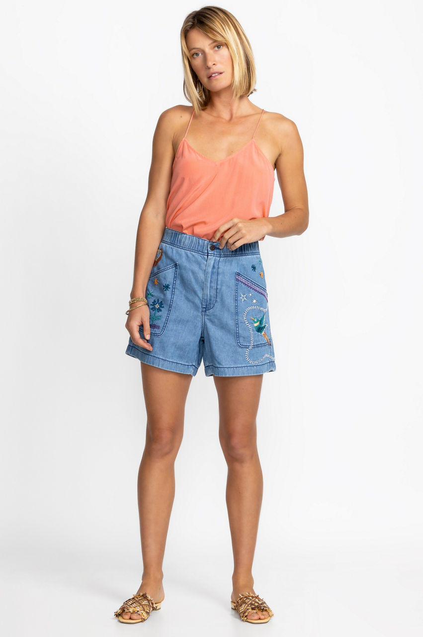 Create a brunch-ready style with the Lyonne Pull On Shorts. Crafted from a super soft cotton blend, these shorts combine the ease of a pull-on waist with a tailored look. Featuring bold embroideries and deep slash pockets, these shorts are a warm-weather staple. Pair with a flowing top and sandals for a memorable look.
