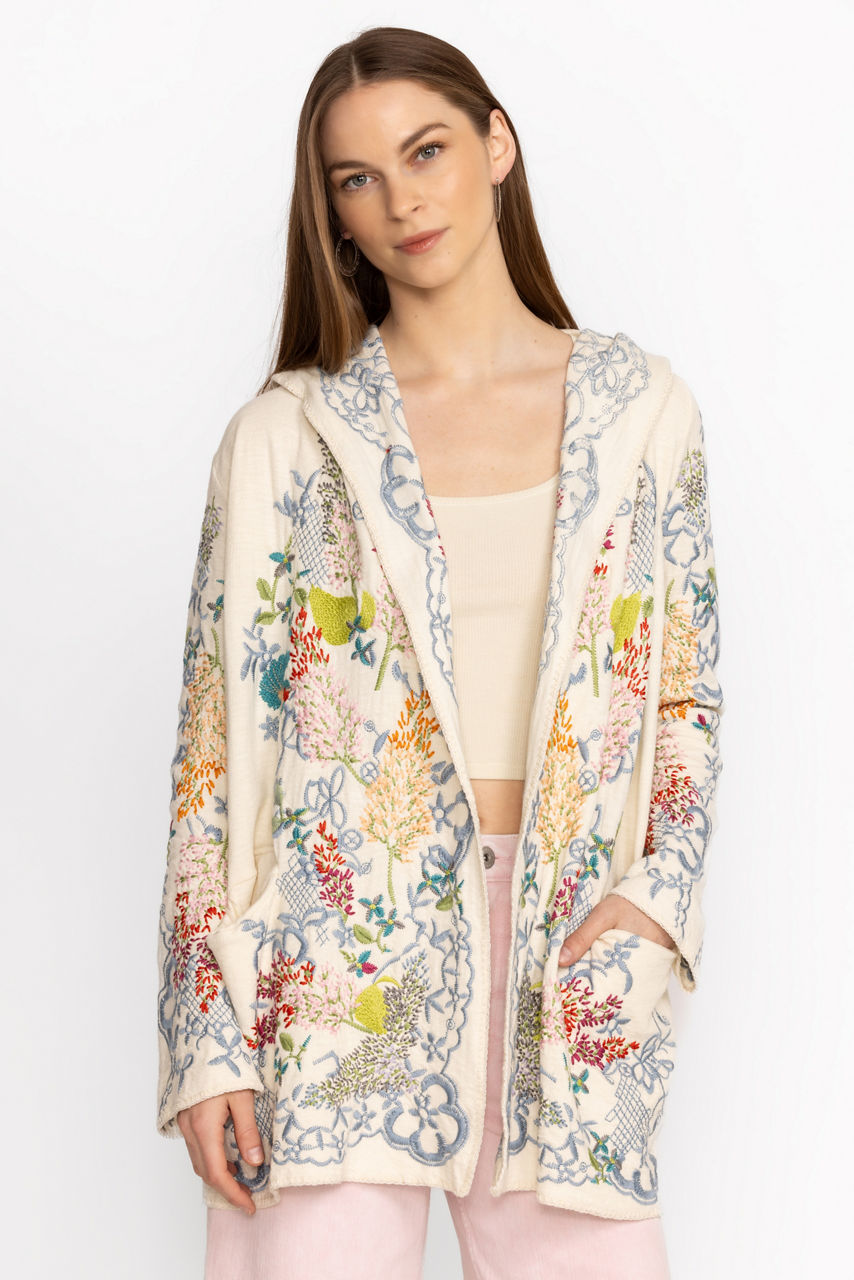 Crafted from 100% breathable cotton, the Madrigal Hoodie Sweater combines comfort and unmistakable style. Featuring a wide V-neckline and generous hood, this easy-care cardigan is embellished with intricate placement embroidery. Layer over a classic tee and relaxed-fit jeans for a cozy weekend look.