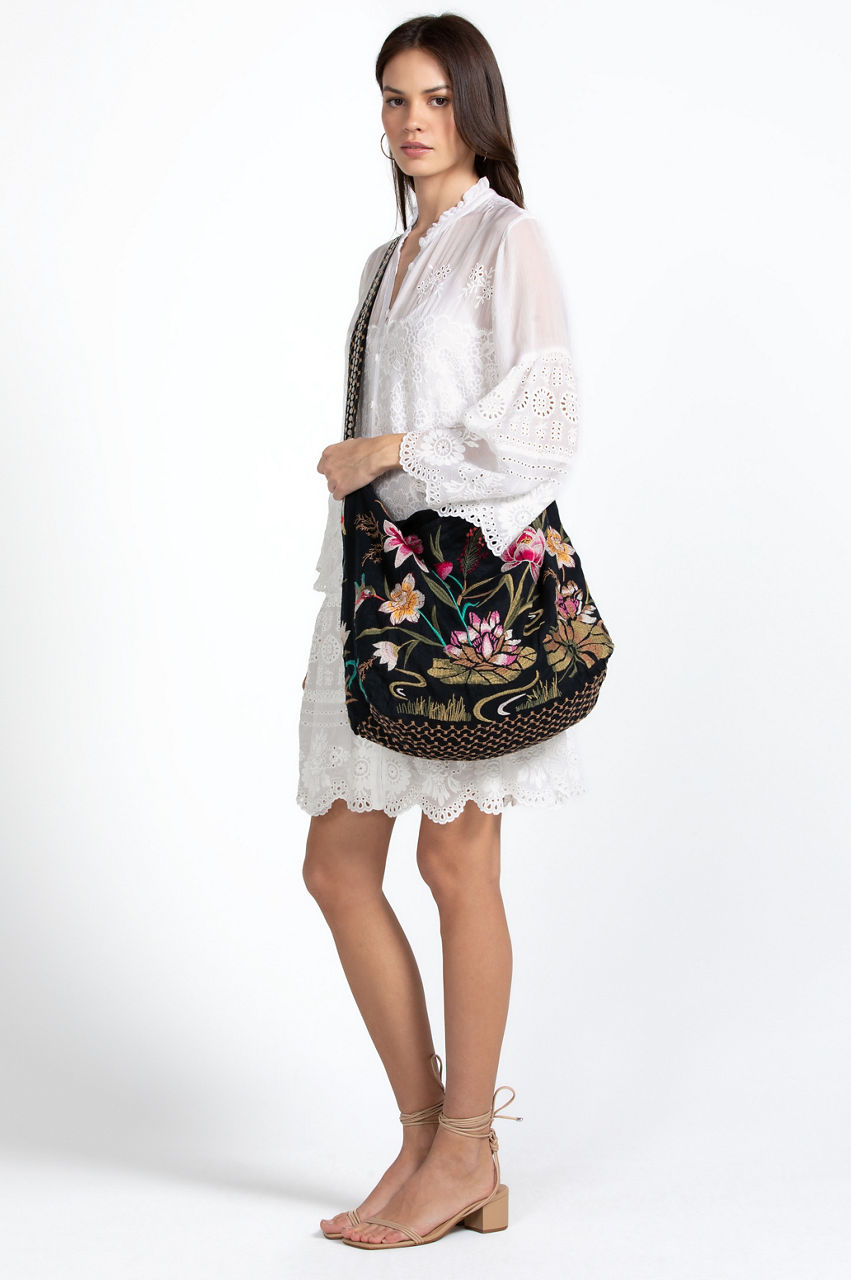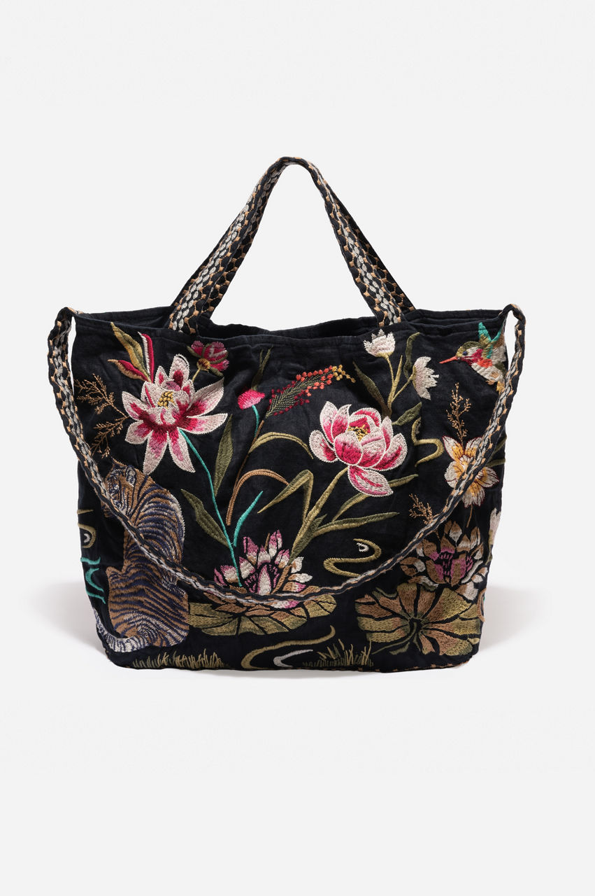 The Maisie Linen Tote Bag centers around a tropical theme and vivacious colors. Perfect for day-to-day errands and vacations, this tote is crafted from durable linen and boasts two top handles, leopard print trims, and a detailed placement embroidery complete with animal and floral motifs. Pair with plain separates or minimal dresses to keep this tote as the focus.