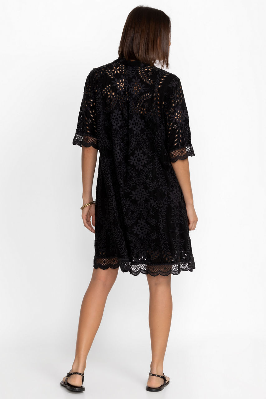 Crafted from a lightweight flowing material, the Malfi Dress offers a fresh take on a classic silhouette. Featuring an open neckline and full slip lining, this distinctly feminine dress is embellished with scalloped detailing at the sleeves and hemline. Pair with bold flats and a sparkling clutch for an evening out with friends.