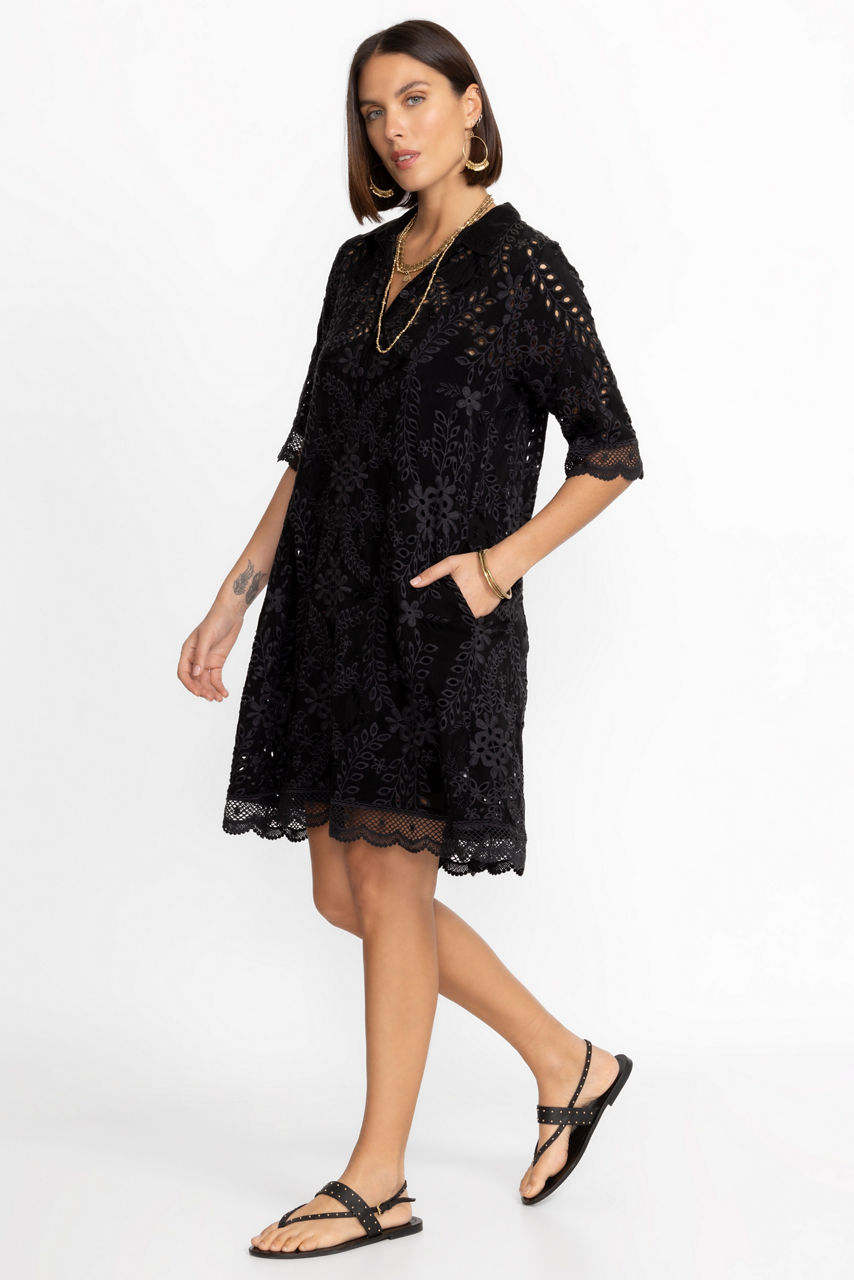Crafted from a lightweight material, the Malfi Dress expertly pairs elevated style with casual comfort. Featuring a collared split V-neckline with a partial button-down placket, this dress offers slip pockets and intricate scalloping at the sleeves and hemline. Pair with casual sandals and a trendy bag for a polished weekend look.