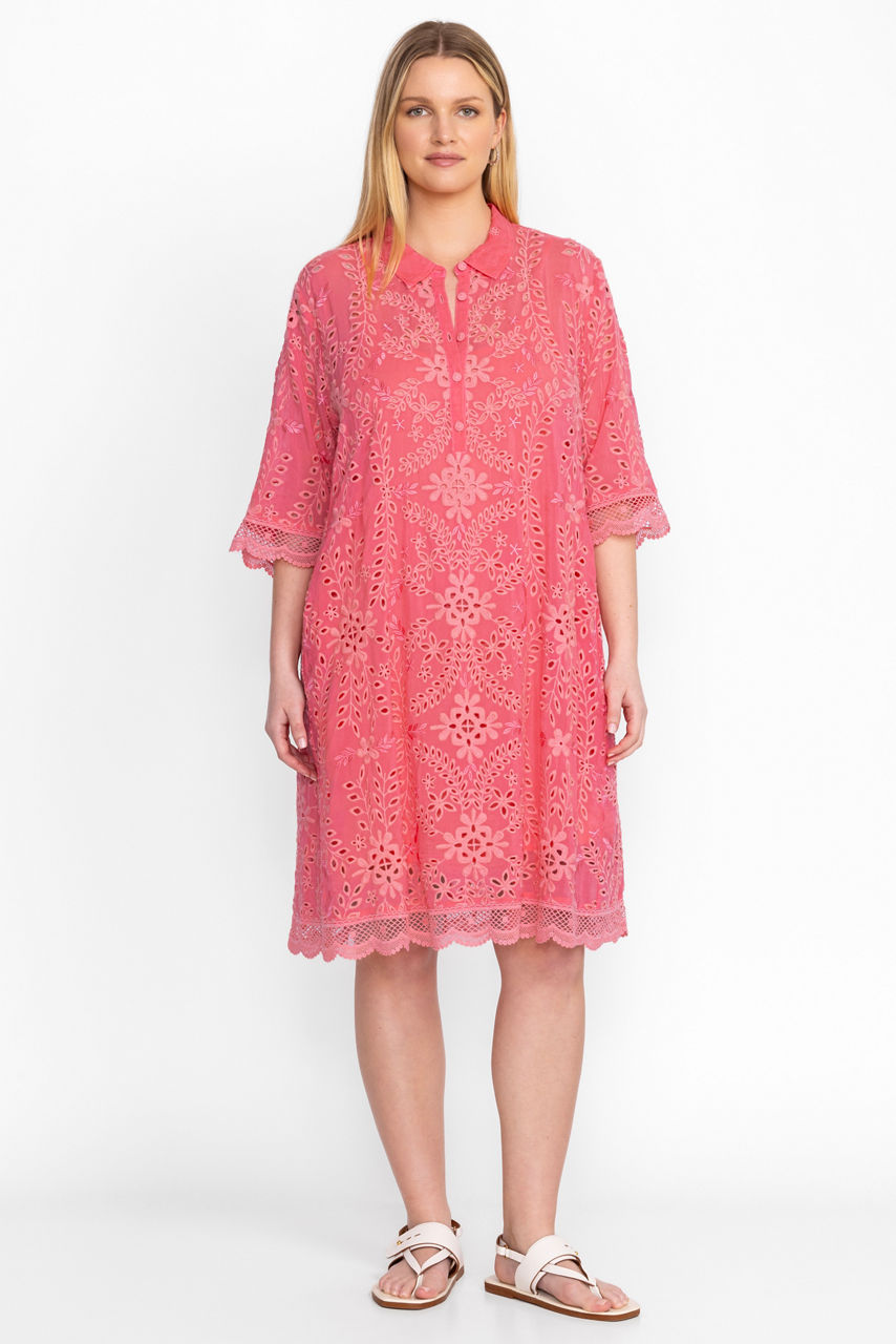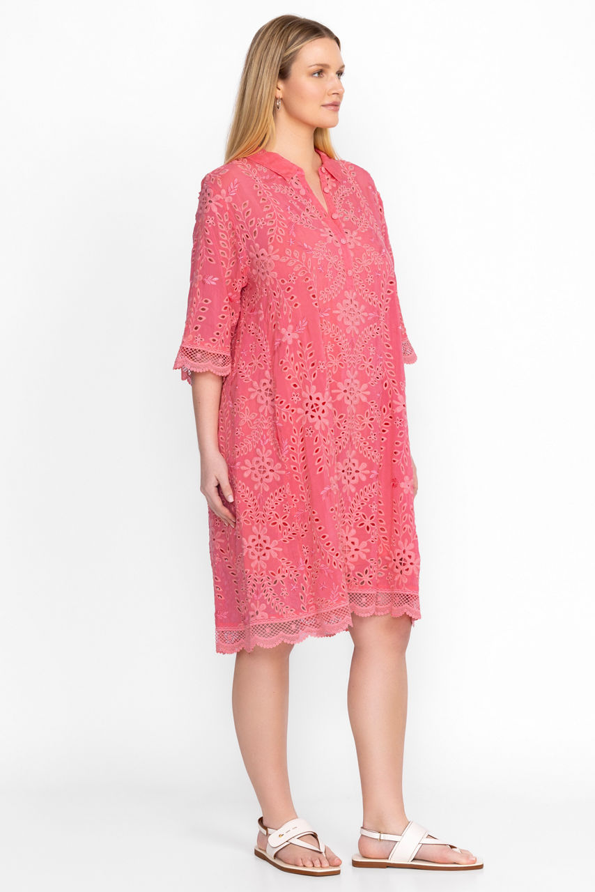 Crafted from a lightweight material, the Malfi Dress expertly pairs elevated style with casual comfort. Featuring a collared split V-neckline with a partial button-down placket, this dress offers slip pockets and intricate scalloping at the sleeves and hemline. Pair with casual sandals and a trendy bag for a polished weekend look.