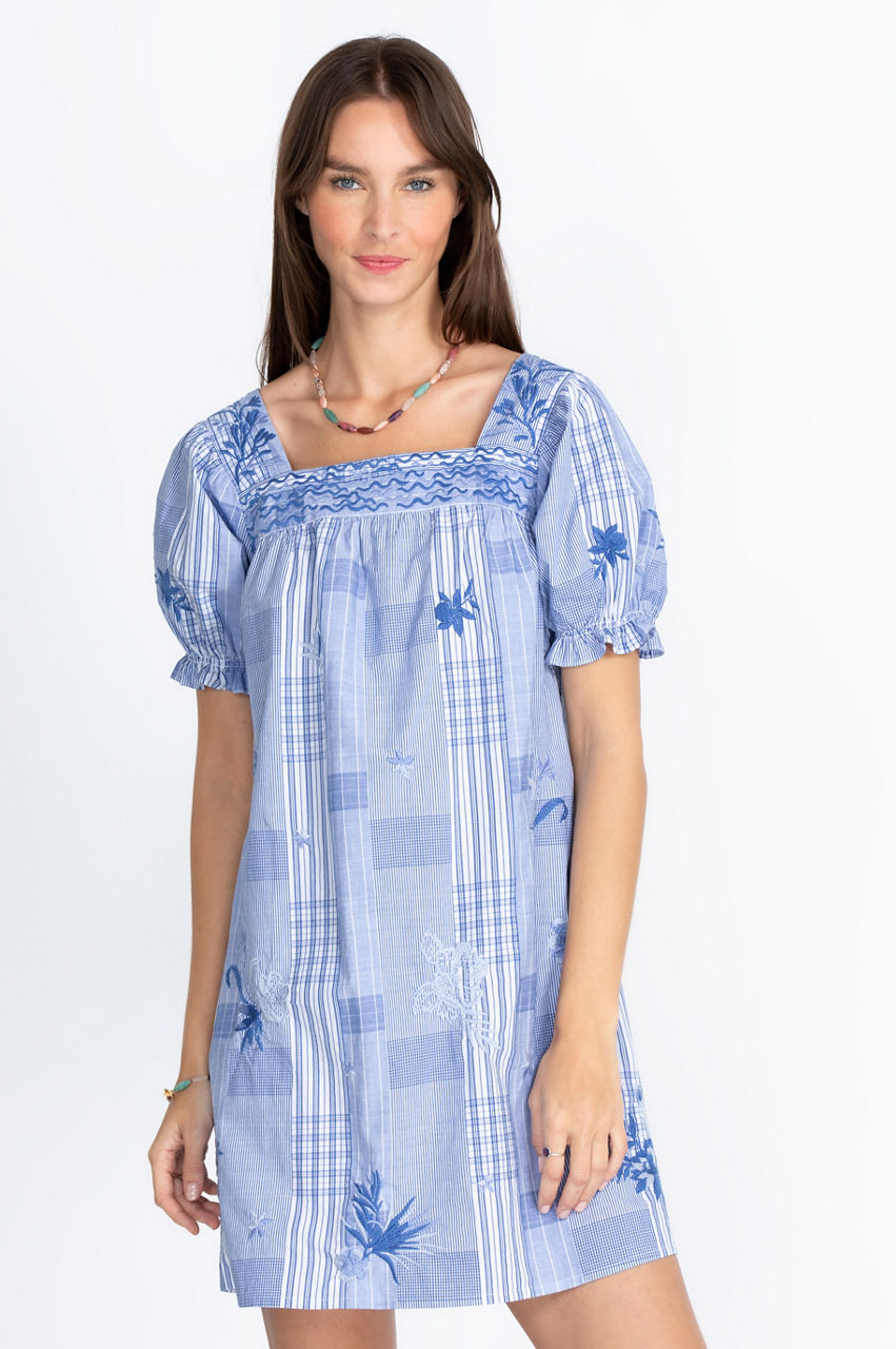 Add versatility to your summer wardrobe with our Marbella Square Neck Park Dress, available in white or plaid and with a neckline that shows off the collarbone. A soft, frilly design decorates both the front and back. The short cuffed elastic sleeves and length accentuate a woman s frame and make for the perfect look when paired with sneakers or sandals for a casual day out.