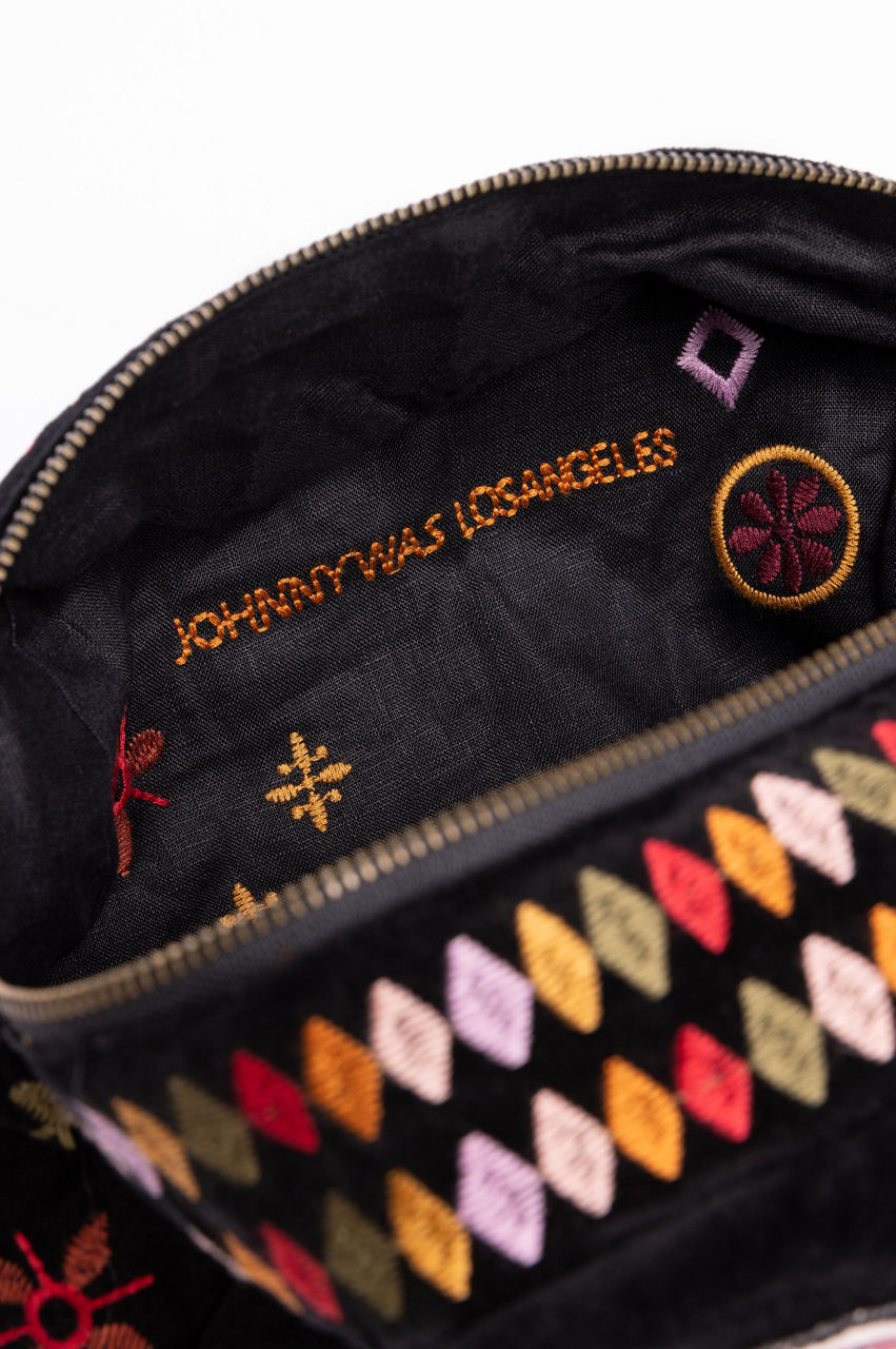 Crafted from pure cotton, the Margo Patched Makeup Pouch is a handy essential for both daily activities and trips. Crafted in black, this makeup pouch features a zip fastening and a colorful floral embroidery complete with beaded details for an opulent finish. Slip this makeup pouch into your tote on your next lunch date with friends.