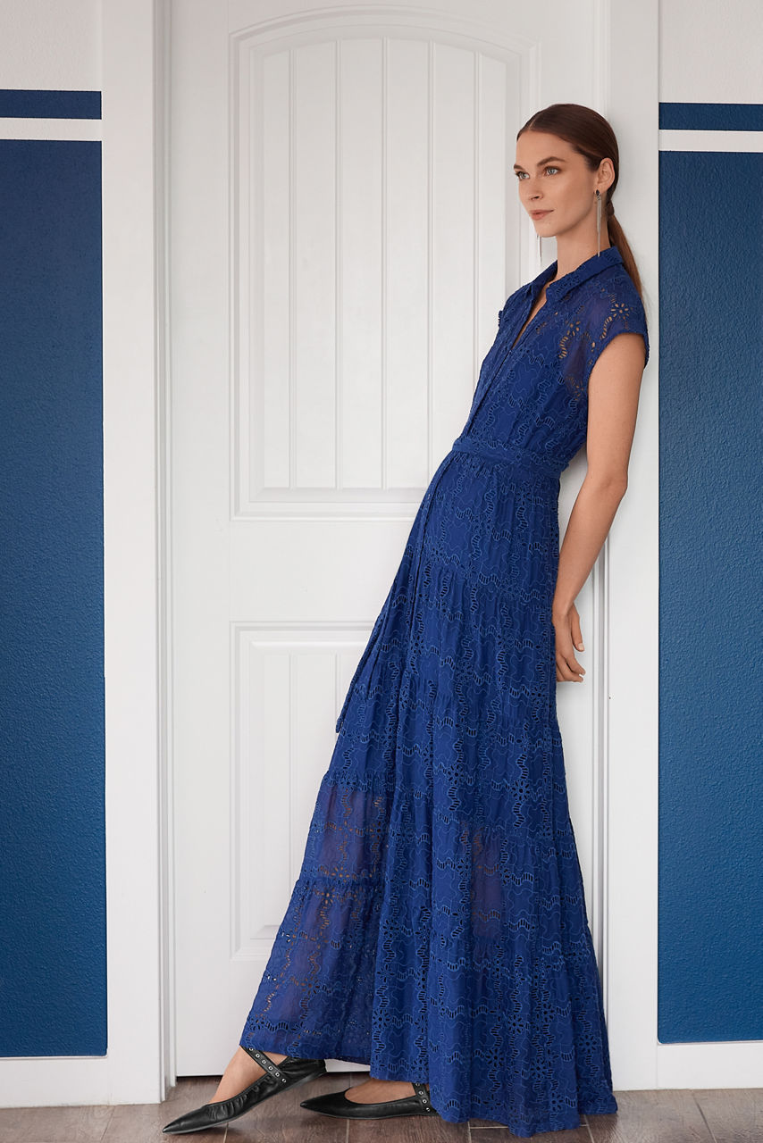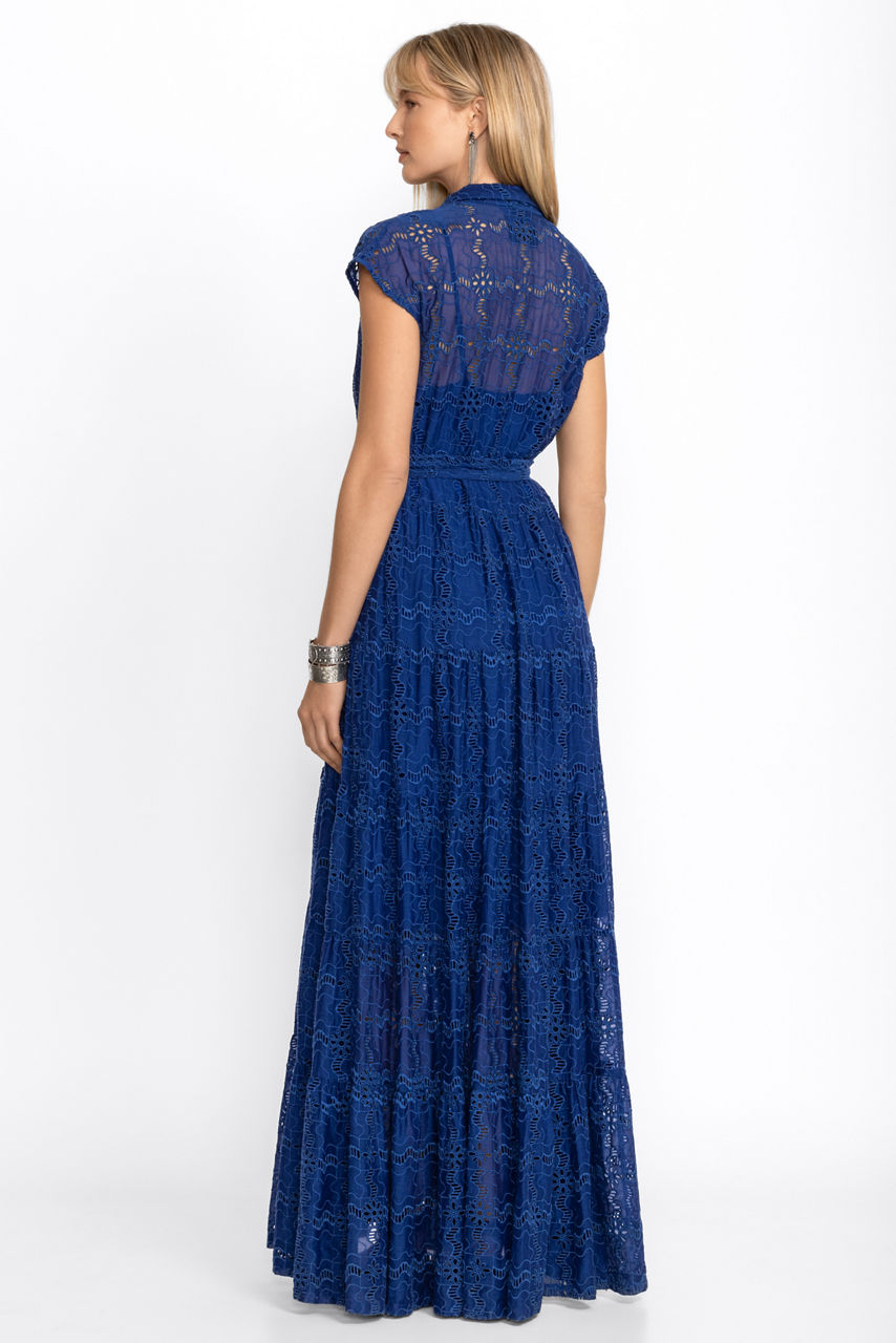 Thoughtfully created with the warmest days in mind, the Marina Joy Silk Maxi Dress is crafted from a unique blend of silk and breathable cotton. Featuring a collared V-neckline and capped sleeves, this flowing tiered dress is embellished with intricate tonal embroidery for exquisite detailing. Pair with a leather clutch and strappy sandals for an oceanside dinner out.