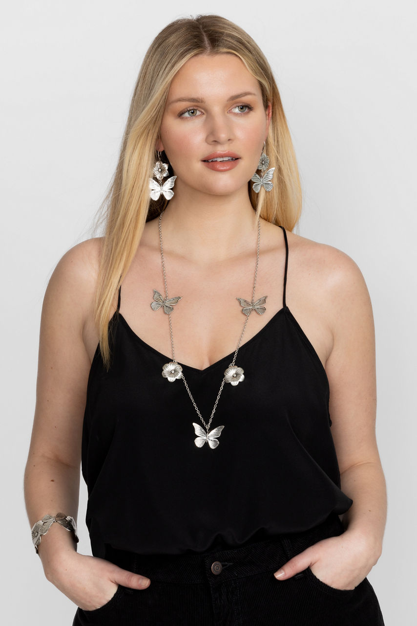 Adding a touch of whimsy to your jewelry collection, the Mariposa Garden Earrings capture the essence of nature. Crafted from 100% brass with sparkling silver plating, these stunning earrings feature an intricate bloom paired with a butterfly in flight. Add to a stunning floral dress and strappy sandals for a brunch date.