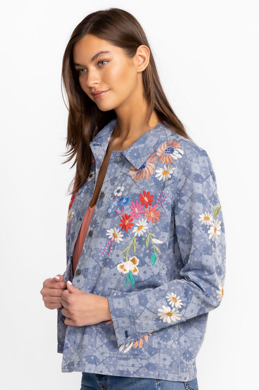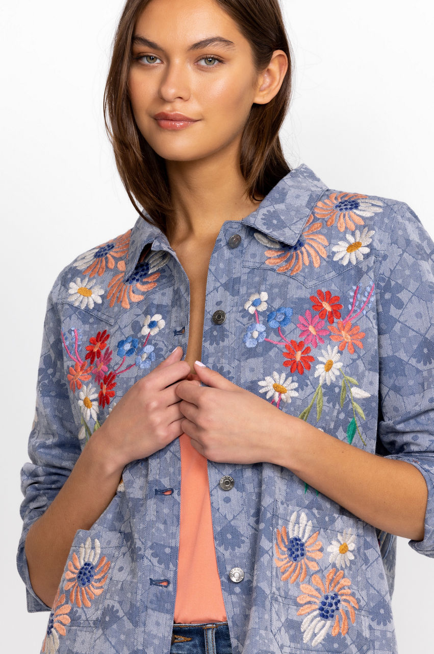 The Marissa Western Worker Jacket is the perfect blend of comfort and style. Embellished with creative placement embroideries, this cotton jacket offers an elegant touch to any look. Pair with a dress or layer over a classic tee: this jacket is as versatile as you want it to be.
