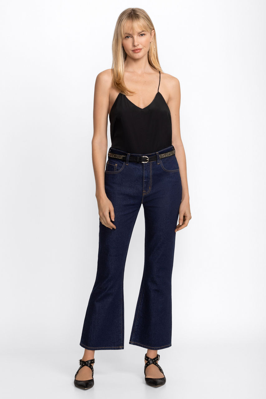 Crafted from an organic cotton blend with a touch of stretch, the Marseille Baby Boot Jeans offer a retro-inspired cropped bootcut featuring a mid-rise waist that's fitted through the knee. These unique jeans flare out slightly at the hem for an eye-catching silhouette. Pair with a fitted blouse and ankle boots for a girls' night out.
