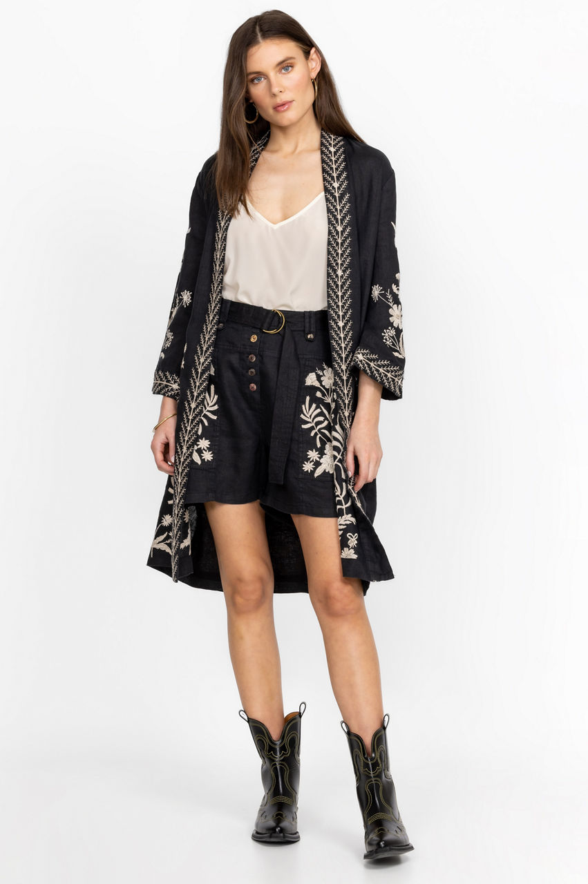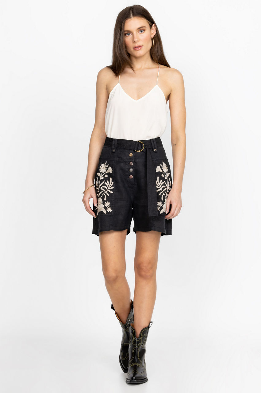 Introduce a dash of elegant utilitarianism to your wardrobe with the Marseille Belted Shorts. A fashion-forward choice for sun-soaked weather, these shorts are made from pure linen, a practical material for warmer days, and boast a belt, a button closure, pockets, and a detailed placement embroidery consisting of wistful blooms. Pair with a matching tee for an effortless co-ord look.