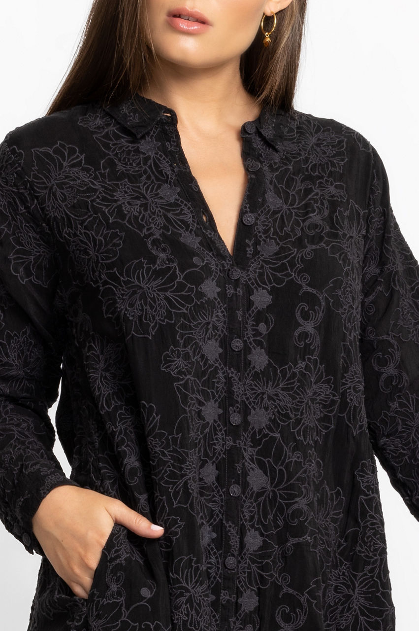 Delivering beauty in every unique feminine detail, the Martin Flyaway Dress offers an escape from the routine. Featuring delicate eye-catching embroidery as well as pockets at the seams, this dress is completed with a lace edge slip for additional coverage. Pair with bold jewelry and wedge espadrille heels for a weekend adventure.