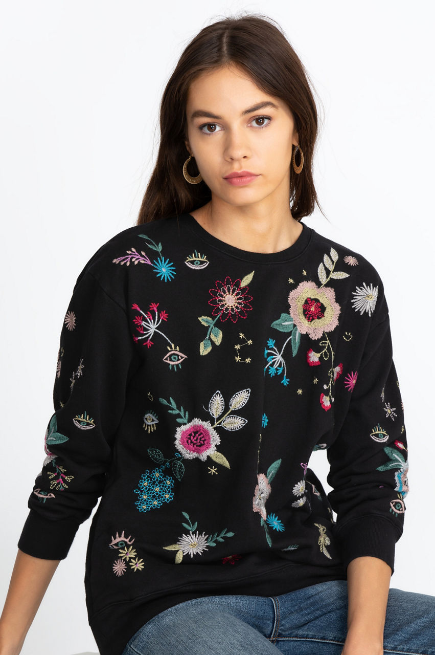 Our Martine 3/4 Sleeve Sweatshirt is perfect for cozy days reading your favorite books or chilly nights sitting with friends around the fire. No matter the occasion, you re sure to make a fashion statement all while staying cozy and warm. Pair this piece with your favorite embroidered leggings and sneakers or with skinny jeans and boho booties to pull off casual Bohemian looks.