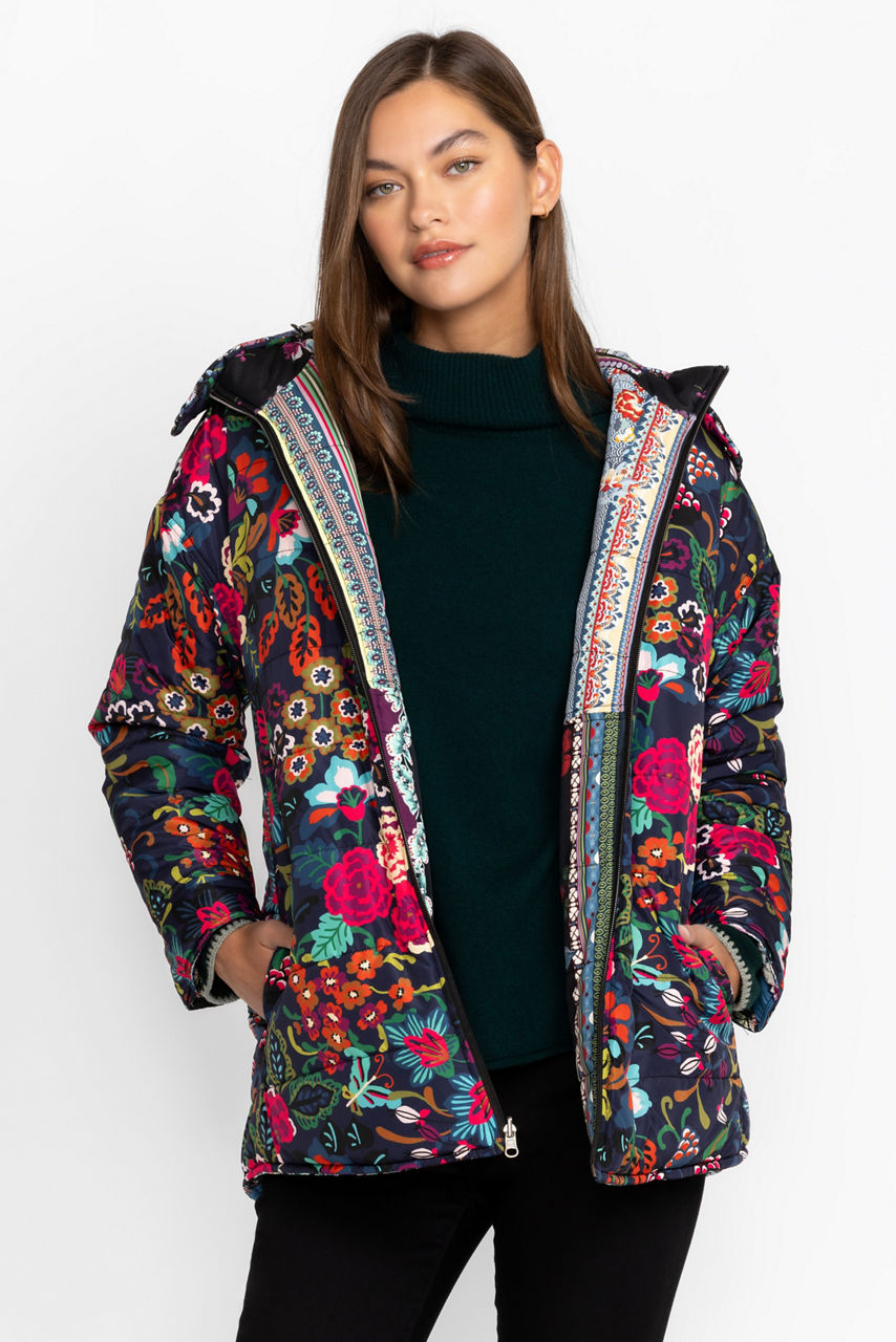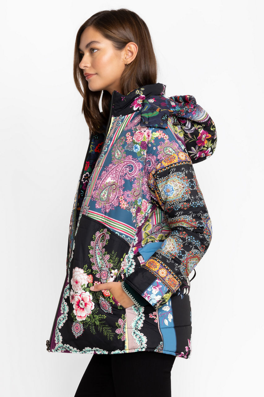 Serving up two uniquely bold designs, the Mauri Puffer Jacket is a fully reversible outerwear piece that will expand your layering options. Featuring a removable hood and an elastic cord at the waist for a custom fit, this jacket offers old world charm with a modern edge. Layer over a cozy pullover and relaxed jeans for a perfect weekend ensemble.