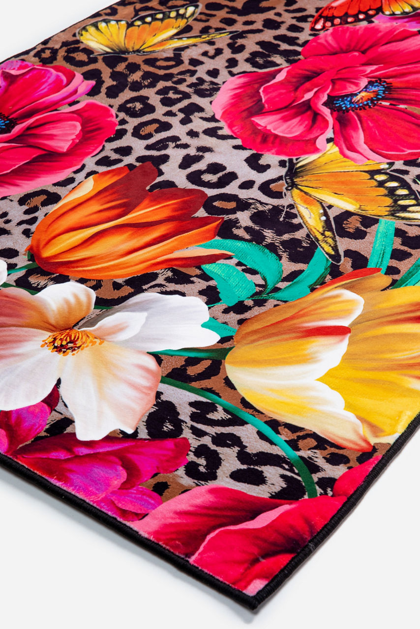 This stylish rug will elevate your interior d cor with its original print. It combines a colorful floral pattern with a leopard print for a chic and modern contrast. Let this gorgeous rug become the focal point of your interior d cor by arranging furniture around it and incorporating additional floral elements into your d cor.