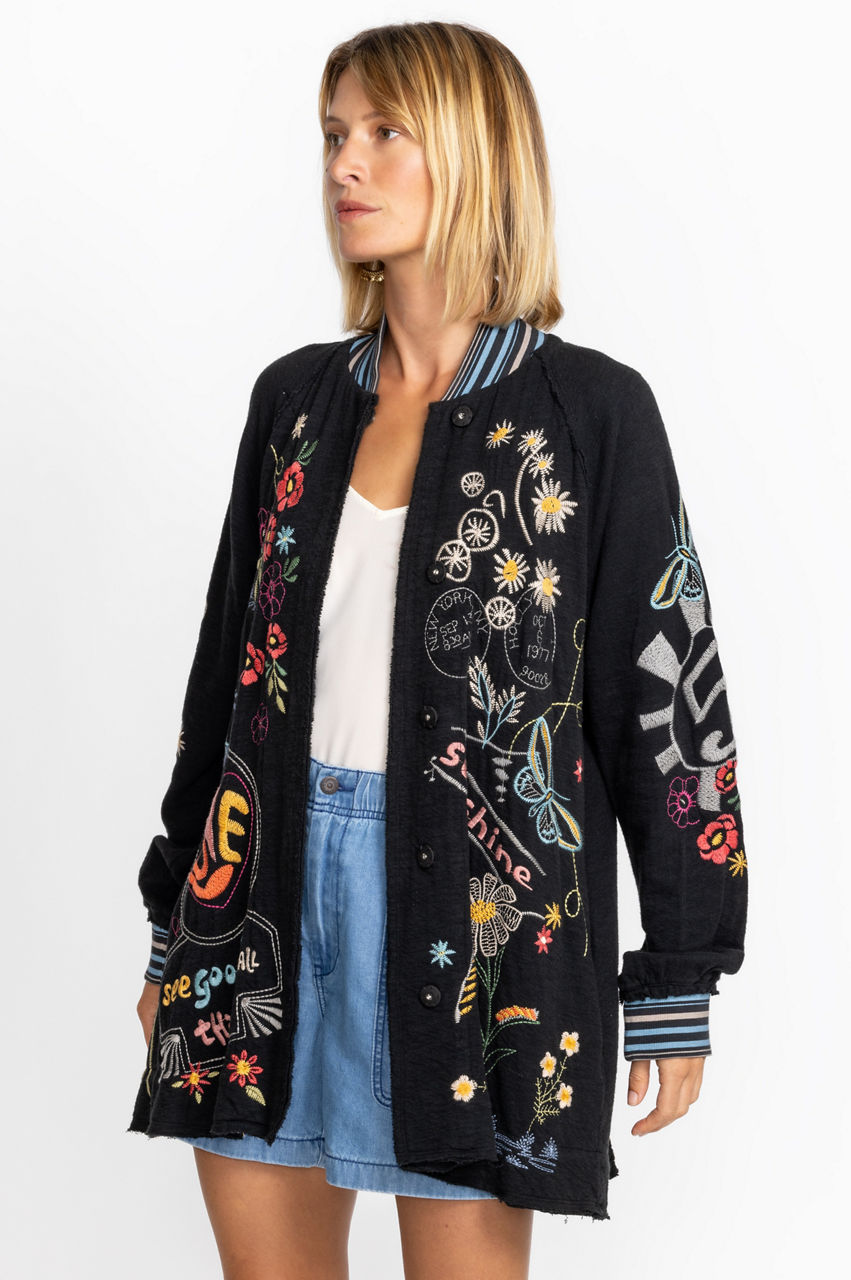 Part contemporary, part classic, the Merida Jacket effortlessly fuses two aesthetics, resulting in a bold statement style. This jacket is designed from cotton and enhanced by sports-inspired details such as a mock collar and ribbed cuffs and are further punctuated by a floral placement embroidery. Layer this jacket over a vest and sign off the look with pants or jeans.