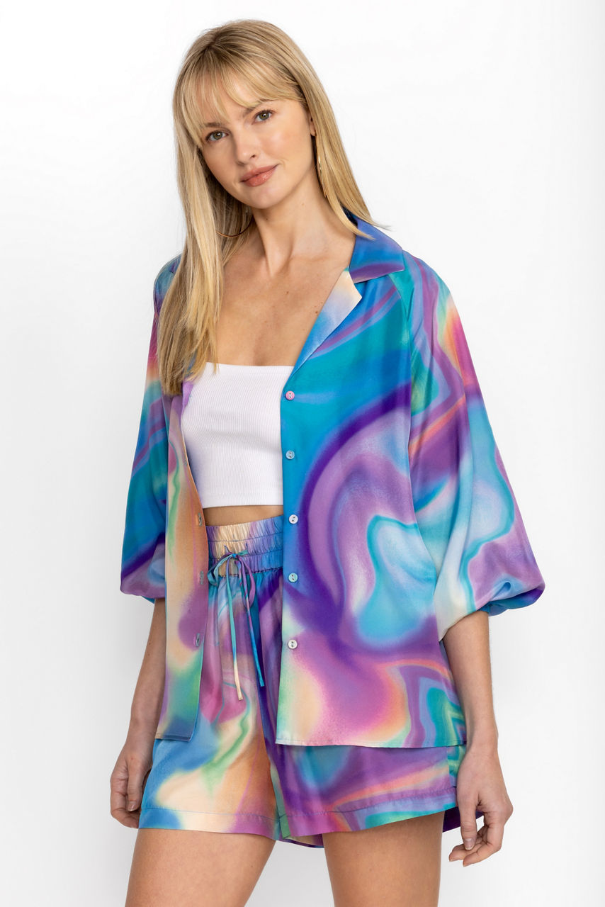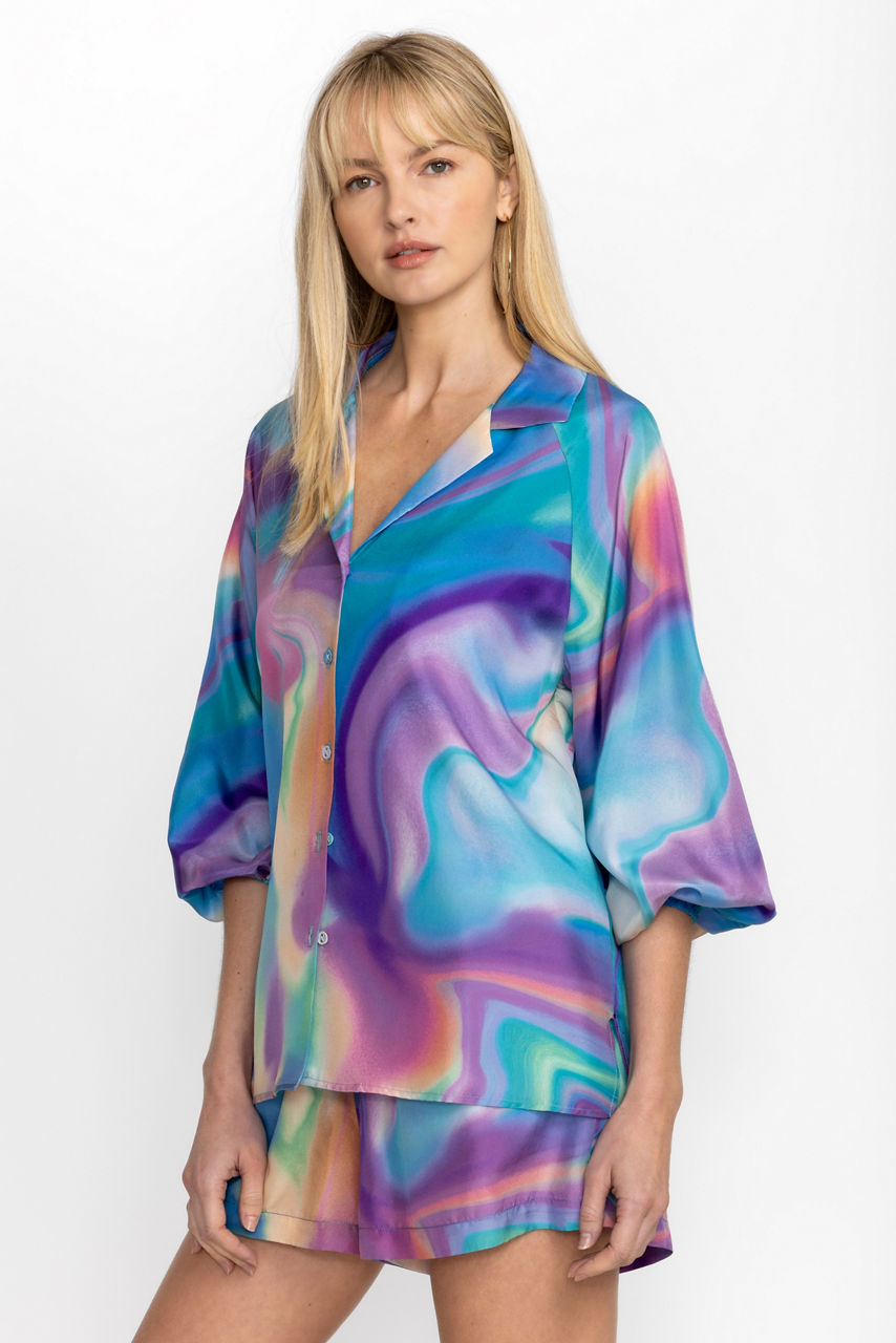 MERIDA MARBLE SMOCKED RAGLAN SHIRT