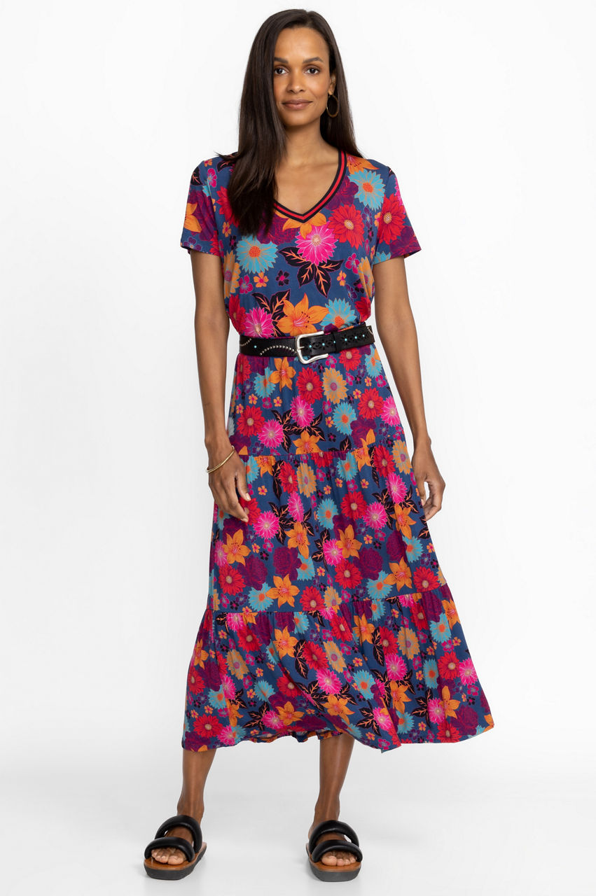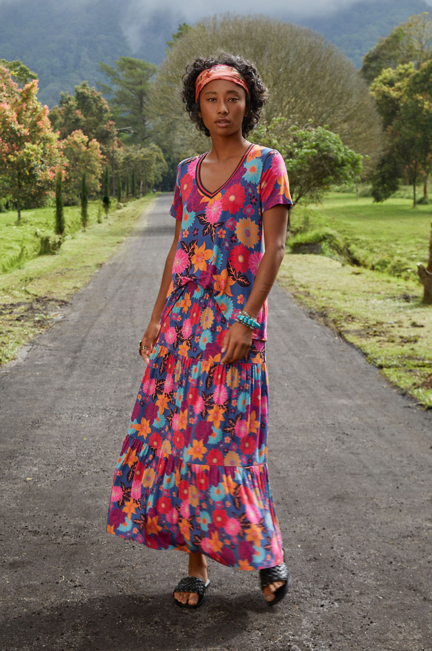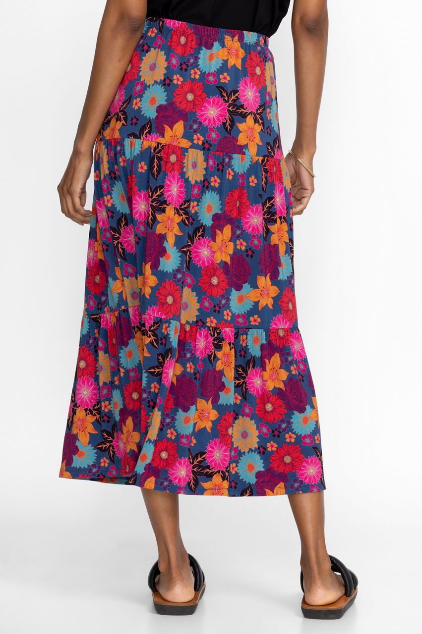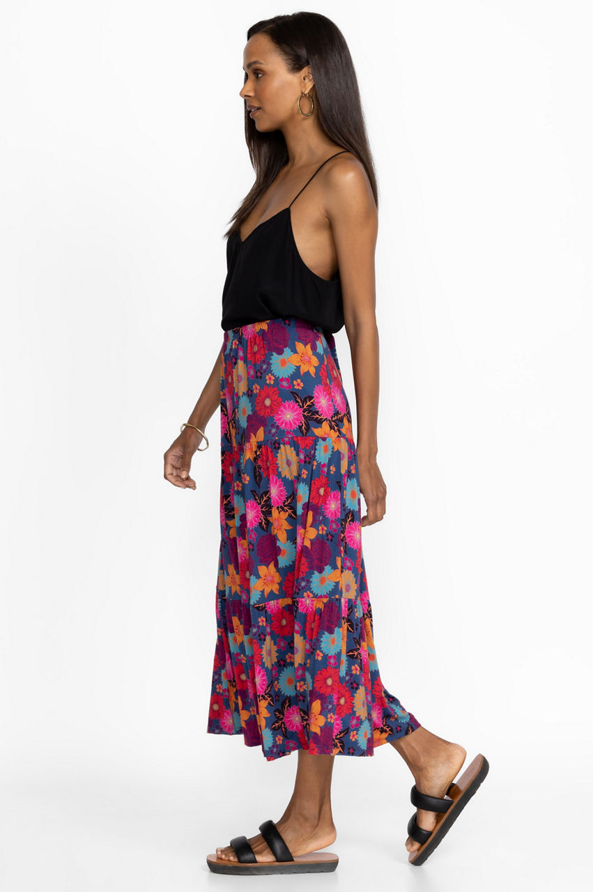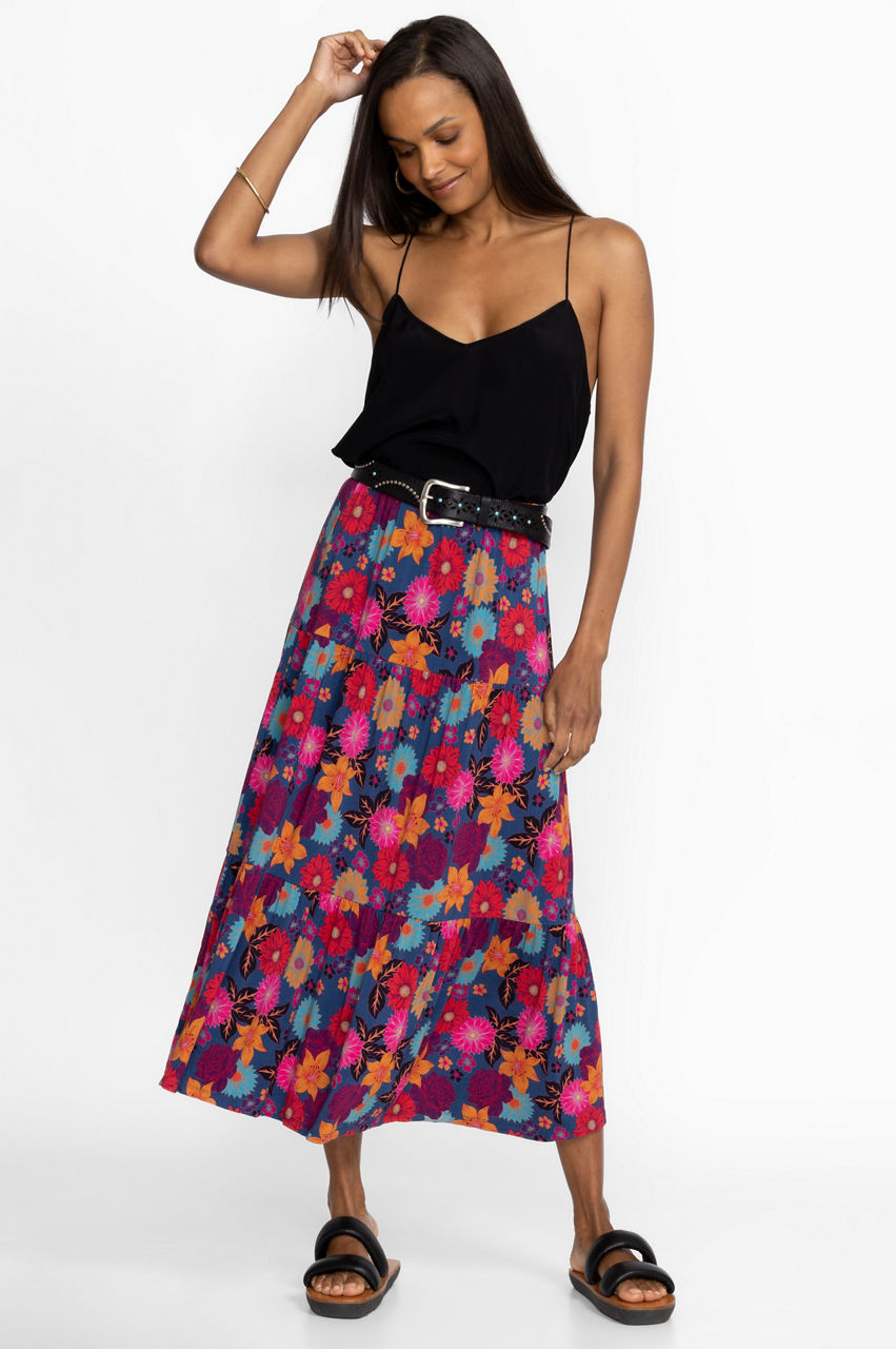 Featuring an adventurous floral pattern in a relaxed fit, the Merida Tiered Skirt is a fresh, luxurious wardrobe addition. Crafted from a lightweight fabric with the warmest days in mind, the A-line shape and flowy tiers create a care-free profile with endless possibilities. Pair with a fitted tank or tee and add a wide brim sunhat for a polished look.