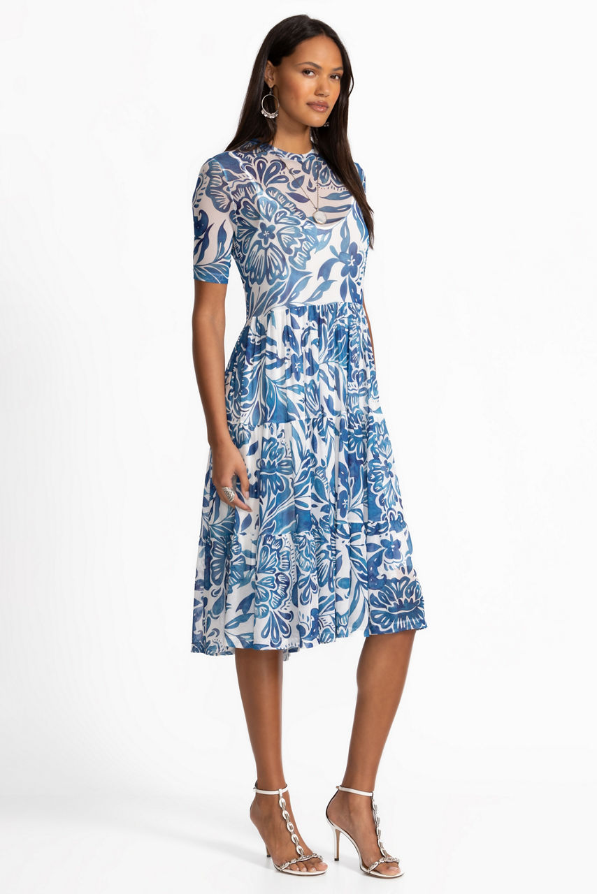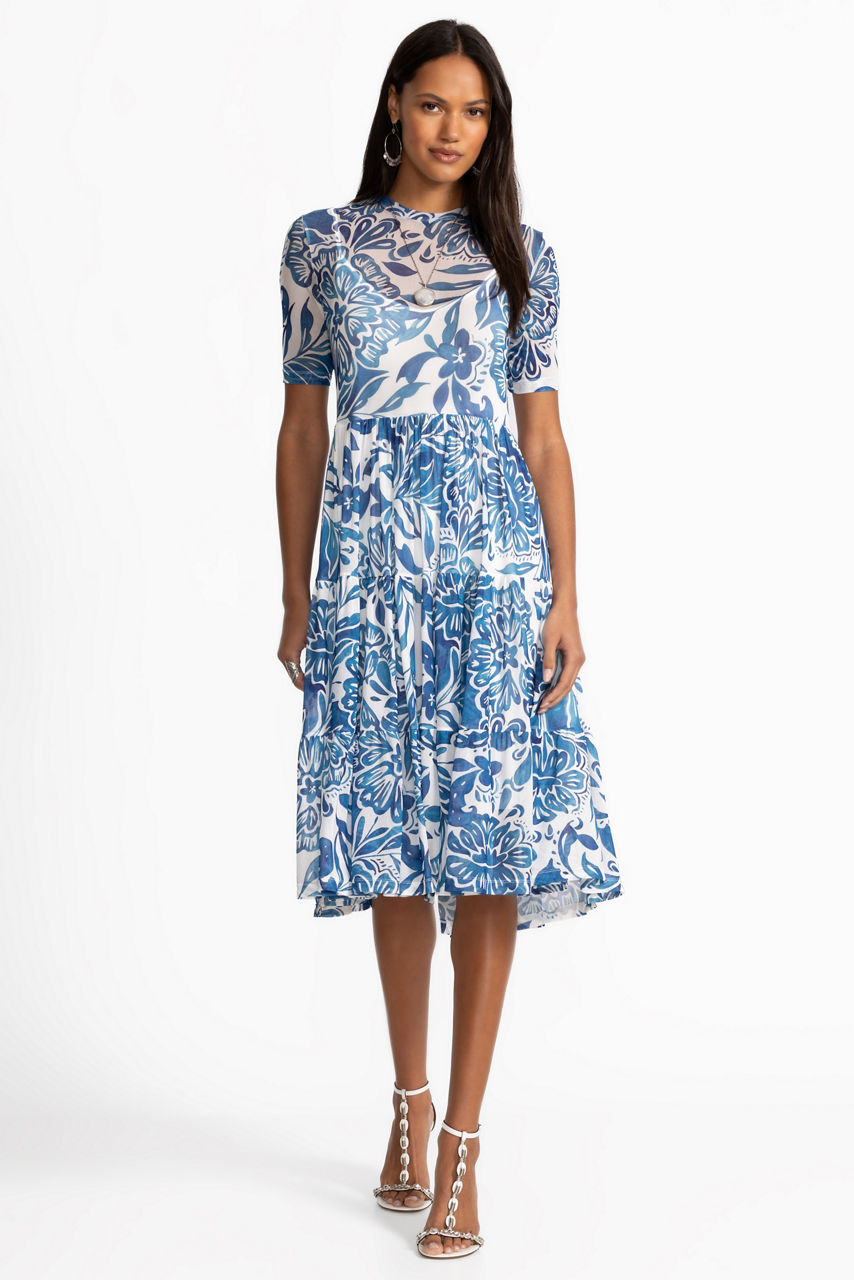 Beautifully adorned with a blend of blue and green hues, the Mesh Tiered Dress offers an elevated casual look with a classic feminine silhouette. Crafted from a lightweight mesh fabric with a hint of stretch, this slip-lined dress features a crew neckline and a flowing tiered skirt. Pair with a casual crossbody and coordinating sandals for a day of sightseeing.