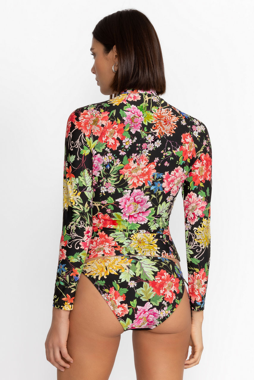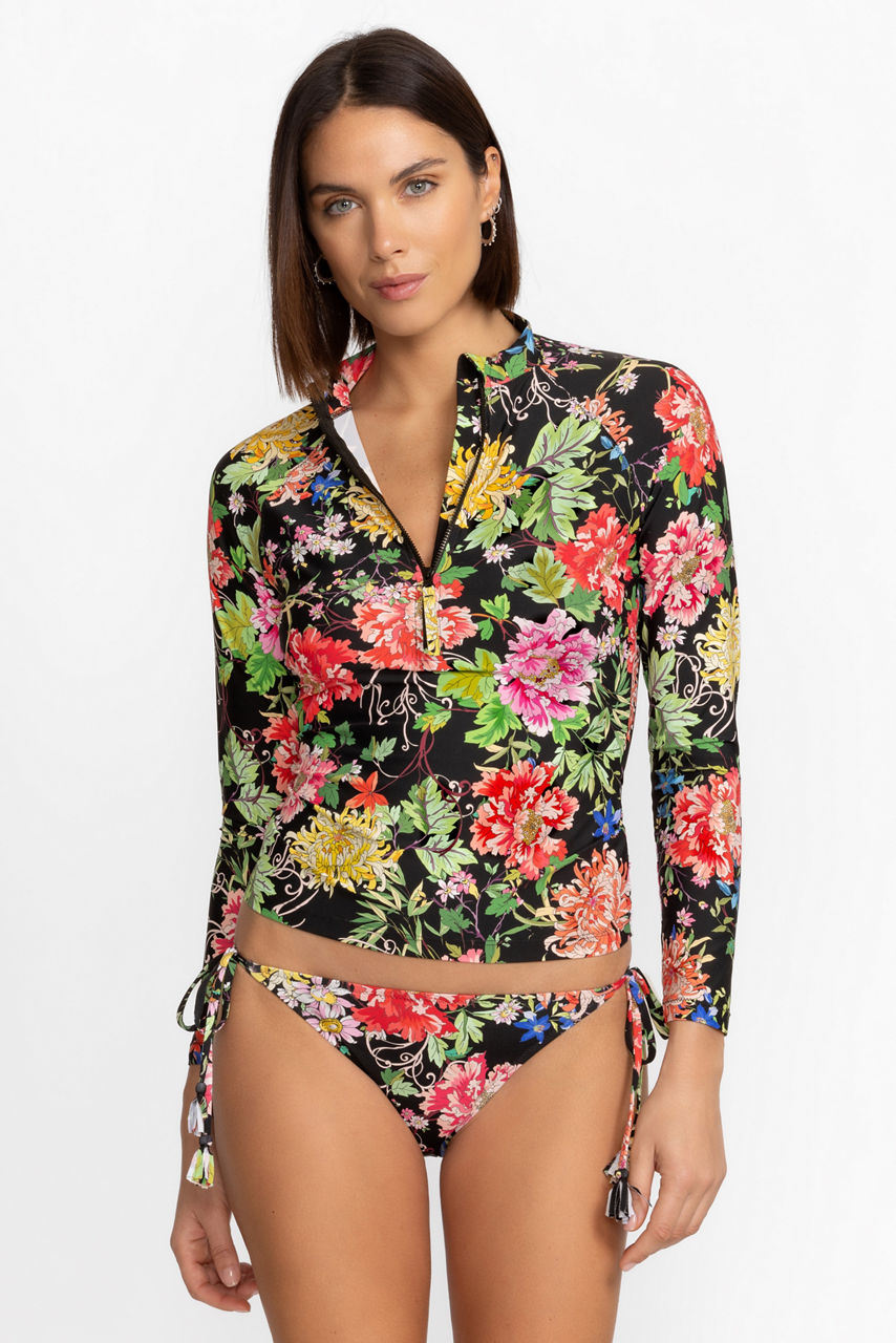 Adorned with brilliant blossoms, the Metalli Notte Long Sleeve Surf Shirt is equal parts stylish and functional. Crafted from a quick-drying material with a hint of stretch, this top features a zip-front closure and long sleeves for additional protection from the sun. Pair with the Metalli Mix Sting Bikini Bottom for a surf-ready look.