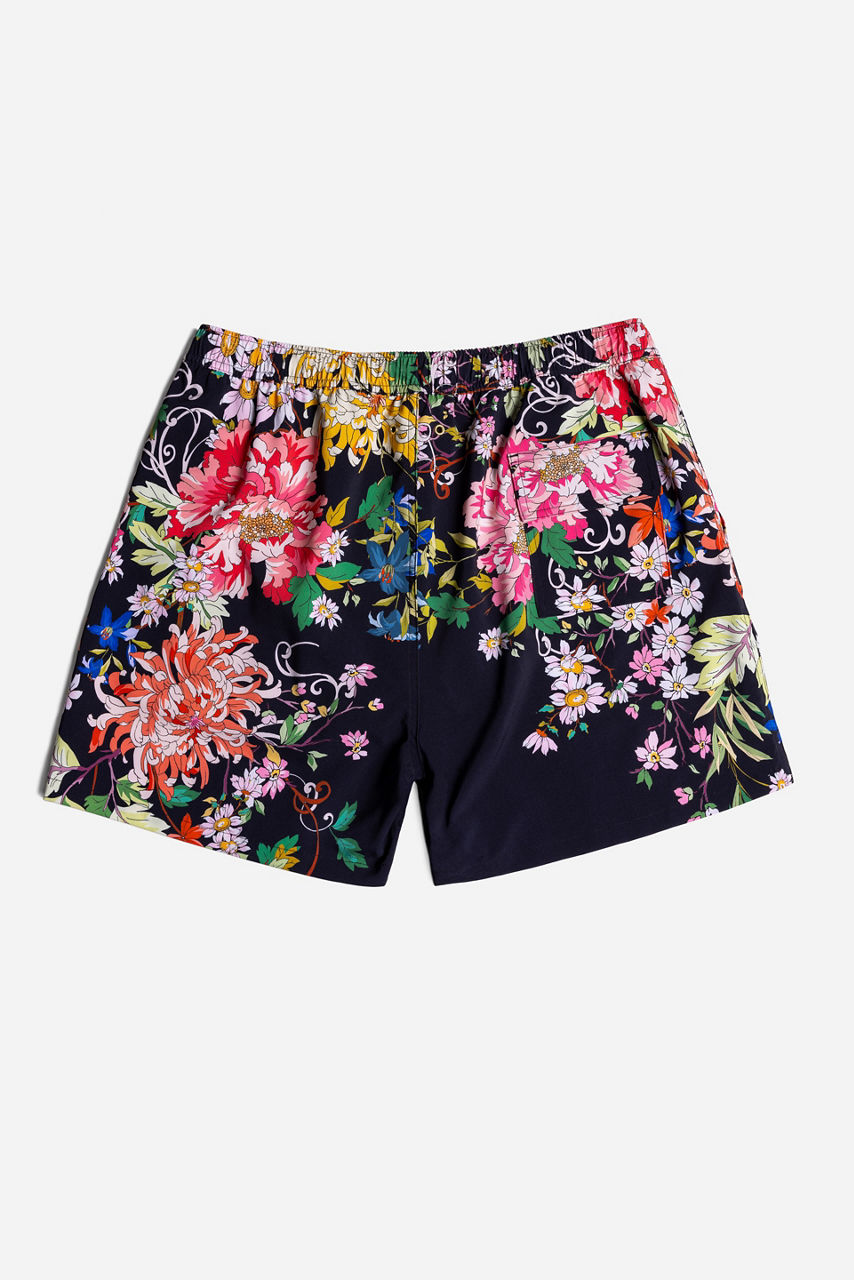 The Metalli Notte Short Men's Trunks are crafted from a lightweight fabric with a hint of stretch. Featuring an elastic waist with a drawstring for a customizable fit, these swim shorts are embellished with bold florals and are finished with front slip pockets. Pair with the Metalli Notte Men's Shirt and leather sandals for a resort-ready look.
