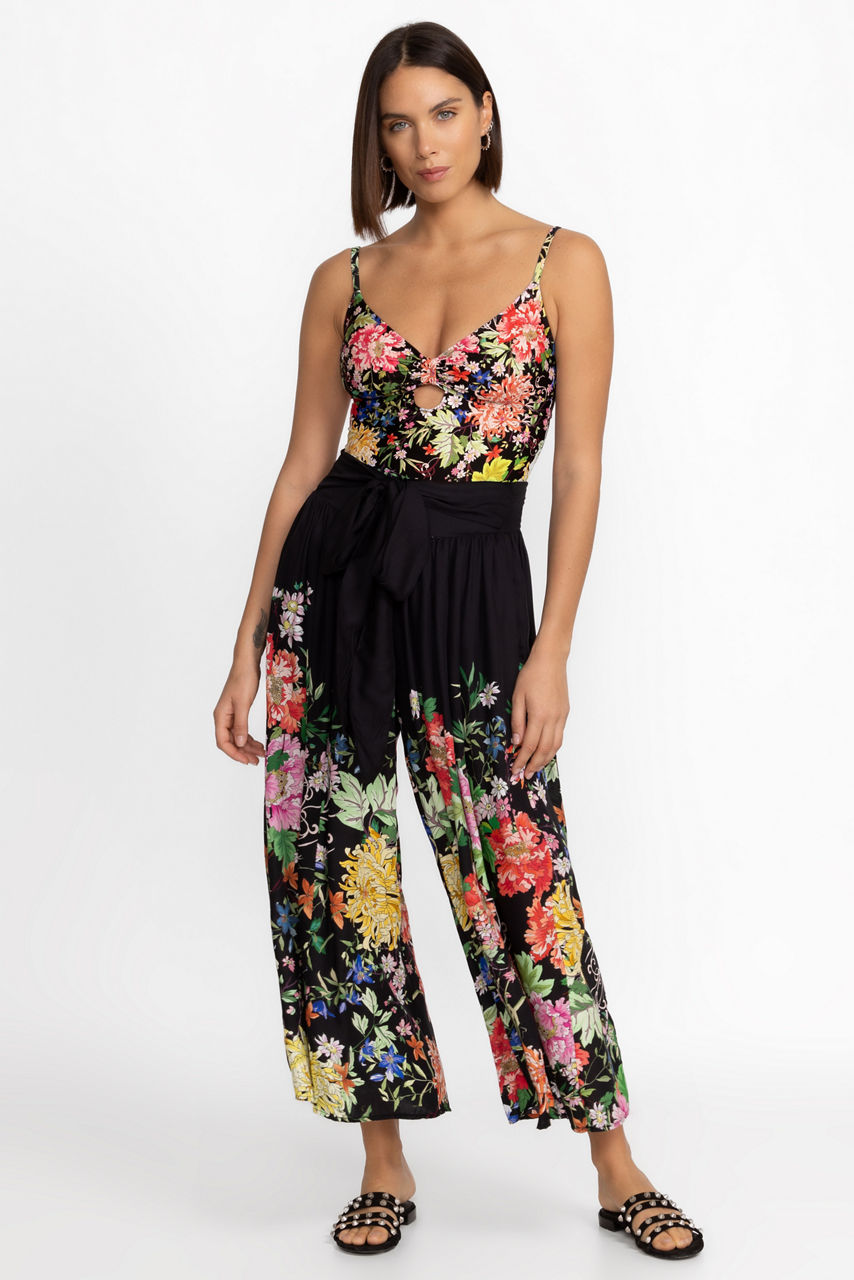 Crafted from a flowing silk blend, the Metalli Notte Cropped Palazzo Pants are emblazoned with vibrant floral bouquets. Featuring a flat front waist with smocking at the back, these lightweight pants are finished with a wide cropped leg. Pair with the Metalli String Bikini Top for an upscale poolside look.