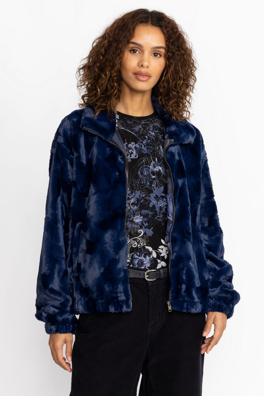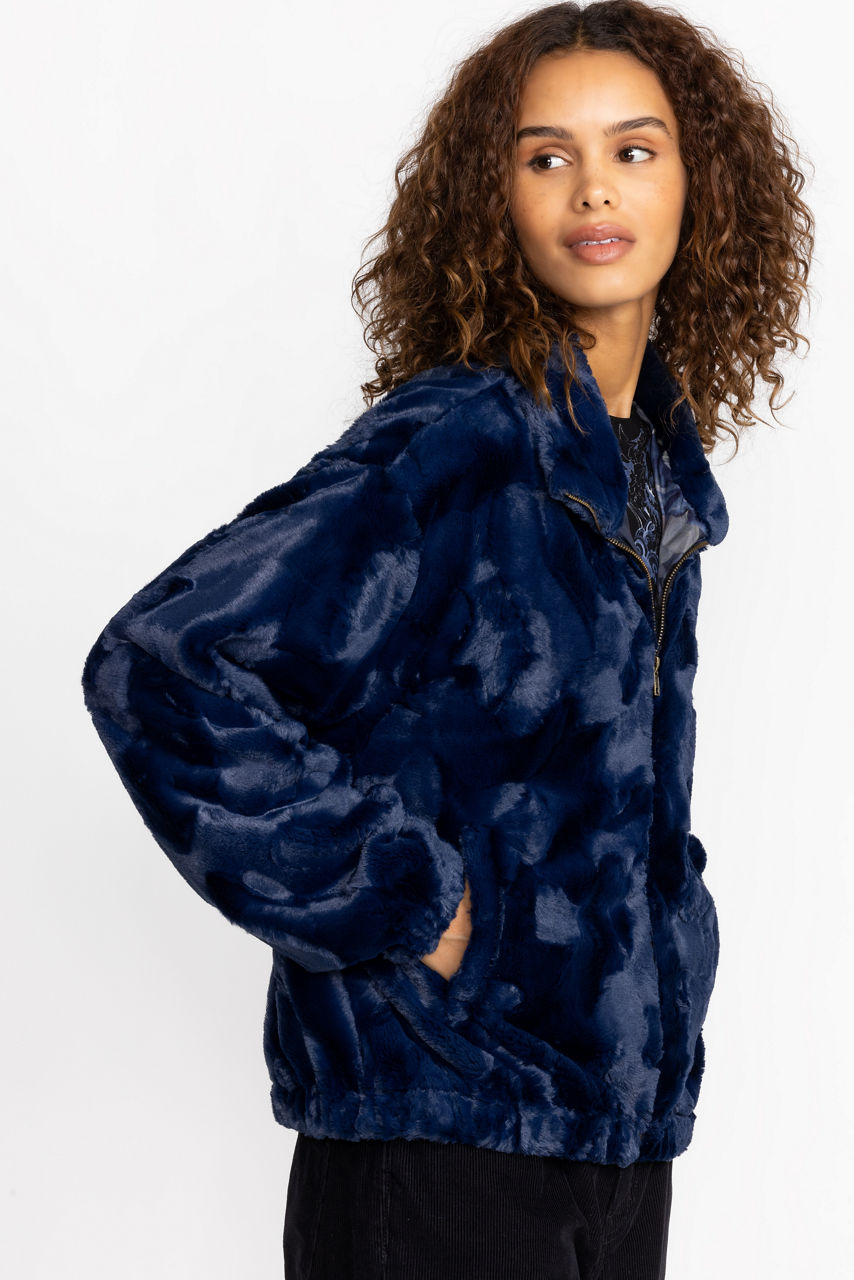 MIDNIGHT FAUX FUR BOMBER