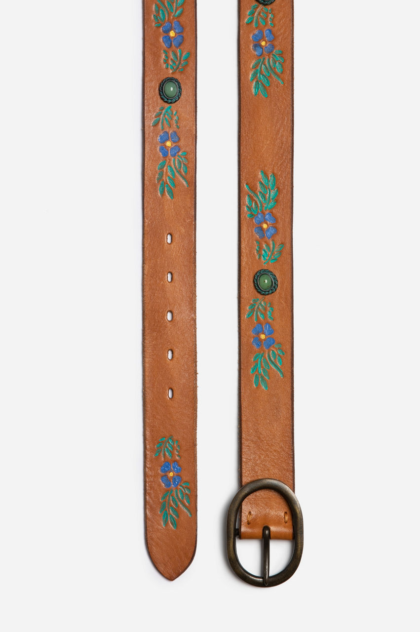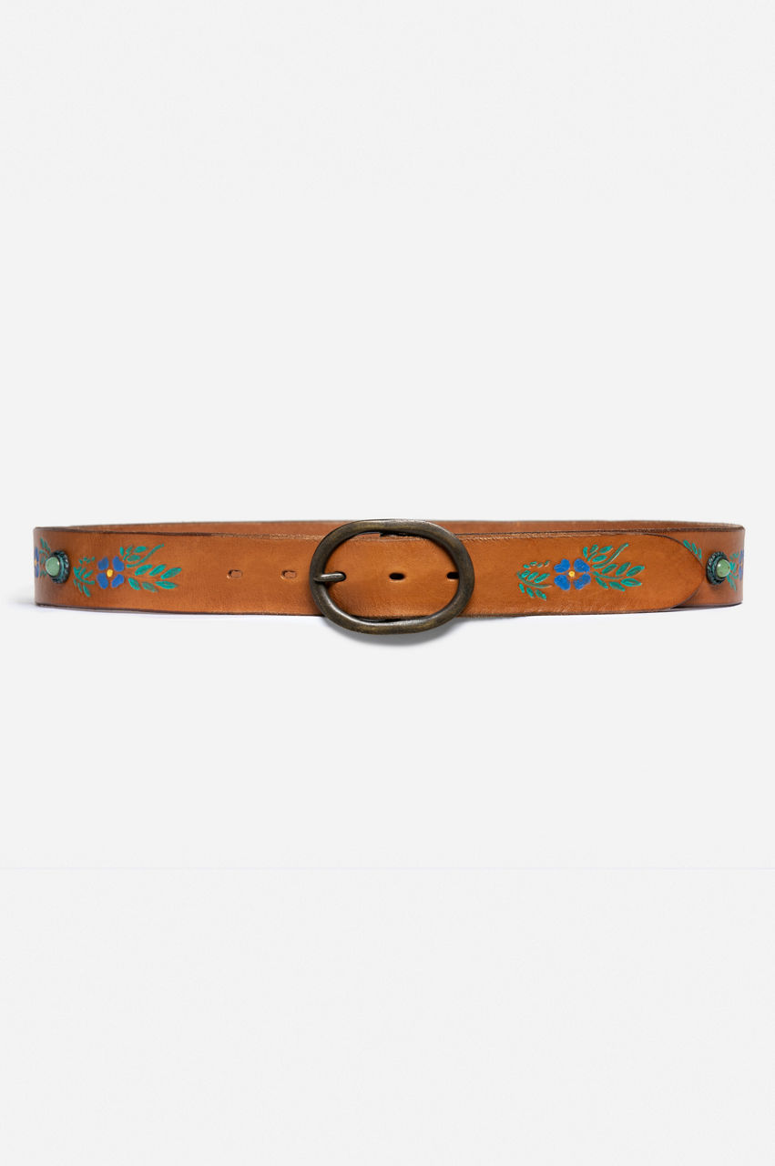 Add charming boho flair to any outfit with our Miele Hand Painted Jade Belt. This piece has meticulously hand-painted patterns and a gorgeous design that makes it perfect for any occasion. Simply pair this belt with your favorite ripped jeans, relaxed tee, and simple, elegant jewelry to pull together an effortless laid-back Bohemian ensemble.