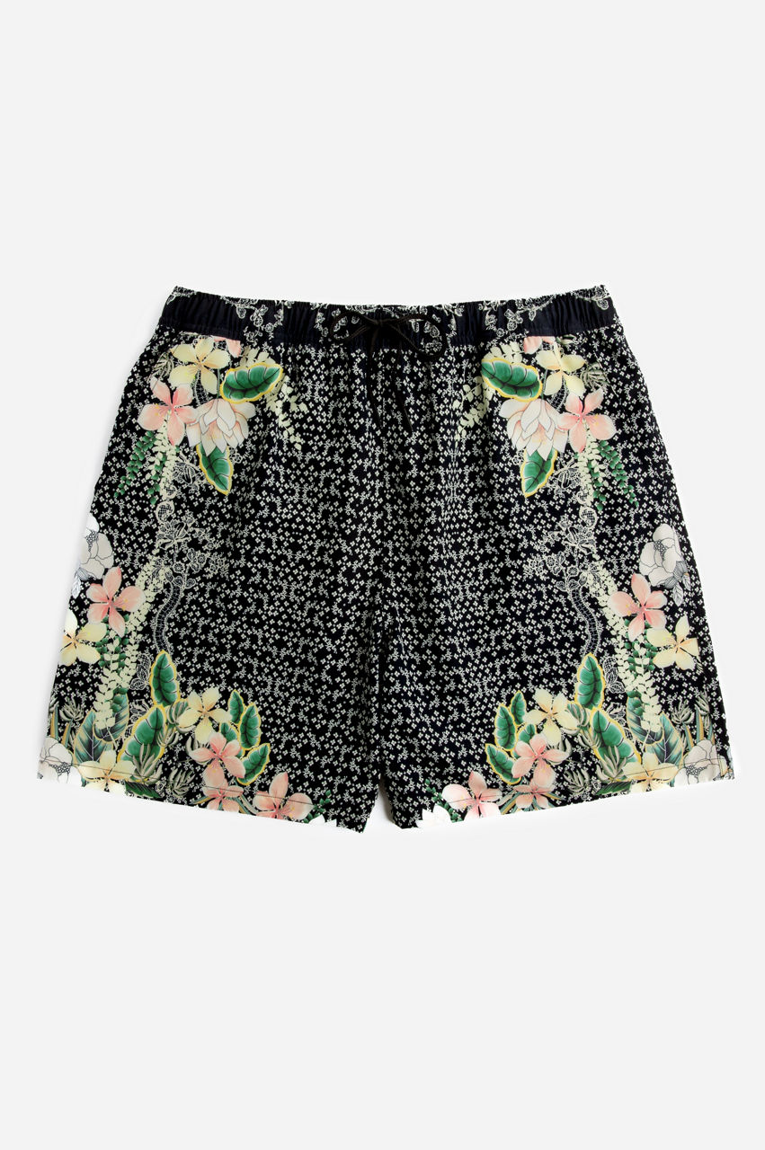 Sun-ready swimwear with an unexpected design twist, the Men's Swim Trunks are a stylish choice for afternoons spent relaxing by the pool. These swim trunks are crafted from a lightweight material with added stretch and boast a drawstring at the waist, pockets, and a bouquet of tropical flowers set against a floral backdrop. Style with a tee and sunglasses for a versatile vacation ensemble.