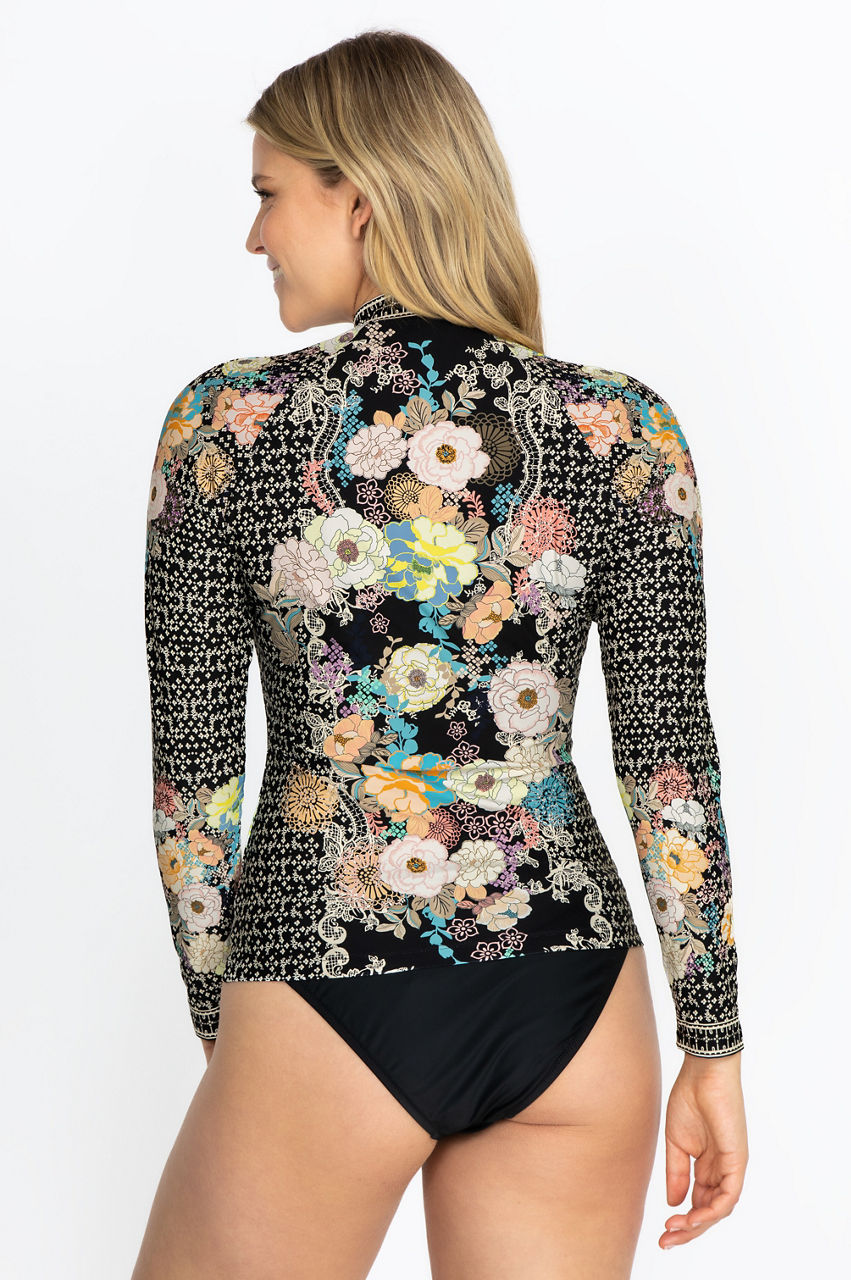 A stylish staple for water sports, the Surf Shirt is infused with an irresistible eclectic charm thanks to its eye-catching, vintage floral motifs. This surf shirt is made from a quick-drying material with added stretch for comfort and is cut in a close fit, effortlessly conforming to the figure. Finished with a zipper front, this surf shirt can be worn with hipster bikini bottoms for a flourishing head-to-toe, oceanside ensemble.