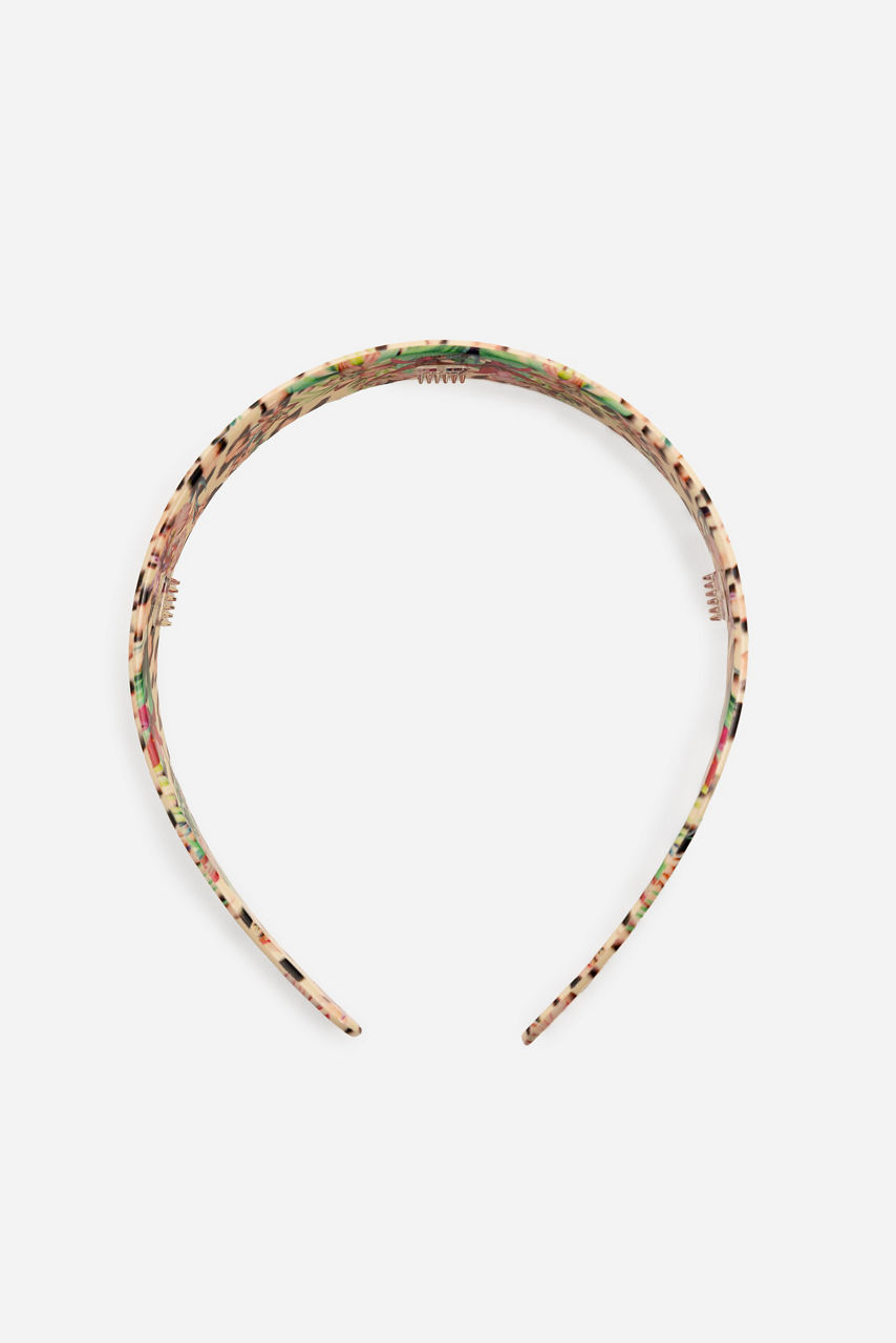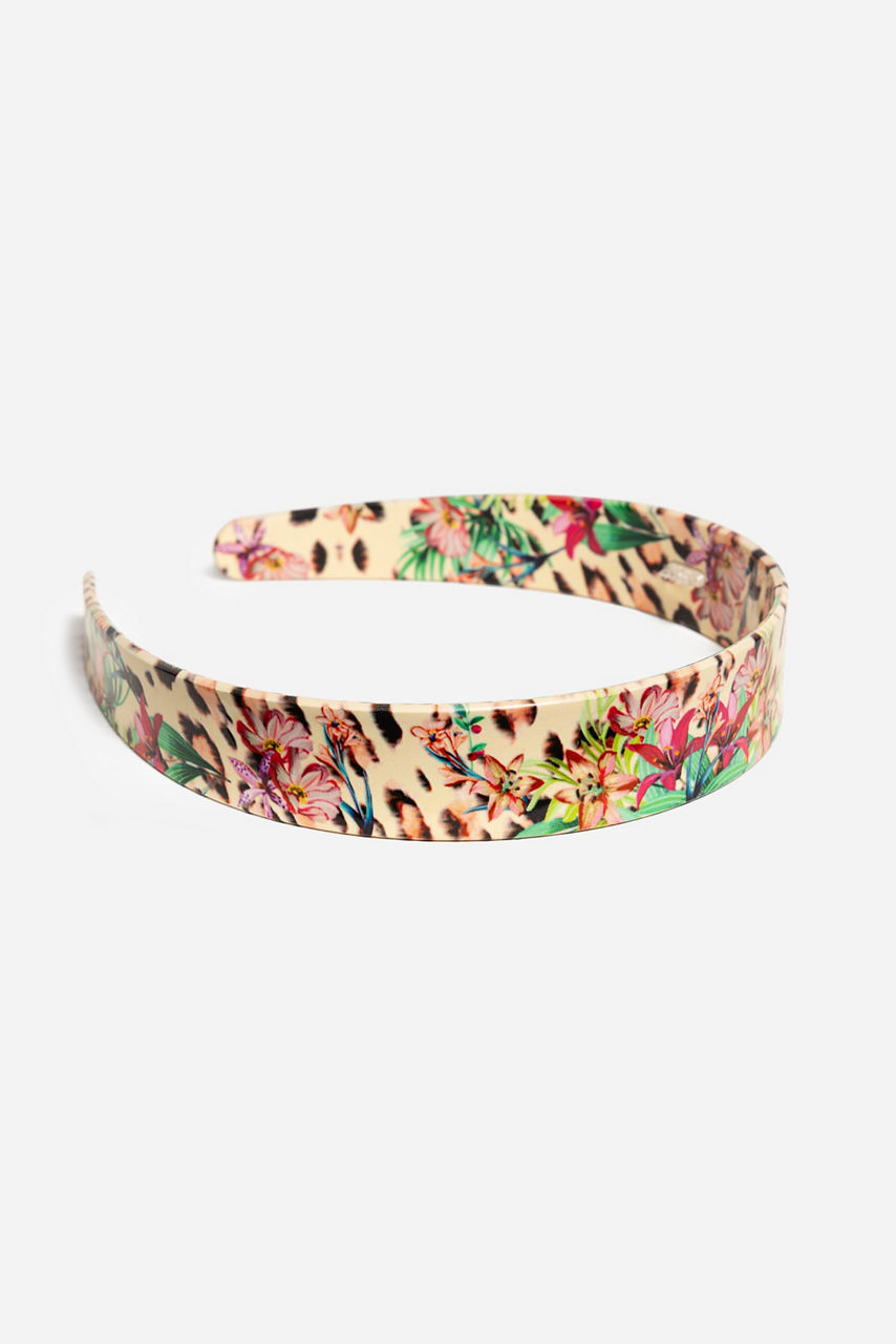 Elegant and glossy, the Miller Tigerlilly Hard Headband adds a touch of sophistication to your everyday styling. Crafted with a rich animal print background and adorned with brilliant floral bouquets, this unique hair accessory coordinates perfectly with a variety of looks. Pair with a white blouse and bold color skirt for a polished casual look.