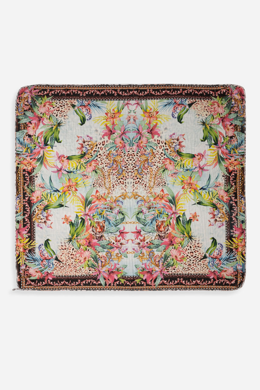 Crafted from 100% breathable cotton, the Guaze Blanket is offered in the Miller Tigre Scarf Print. intricately detailed with vibrant color and pattern, this fully reversible blanket adds a decorative touch to your home space. Add as a throw at the foot of the bed, or on the back of the sofa for a pop of visual interest.
