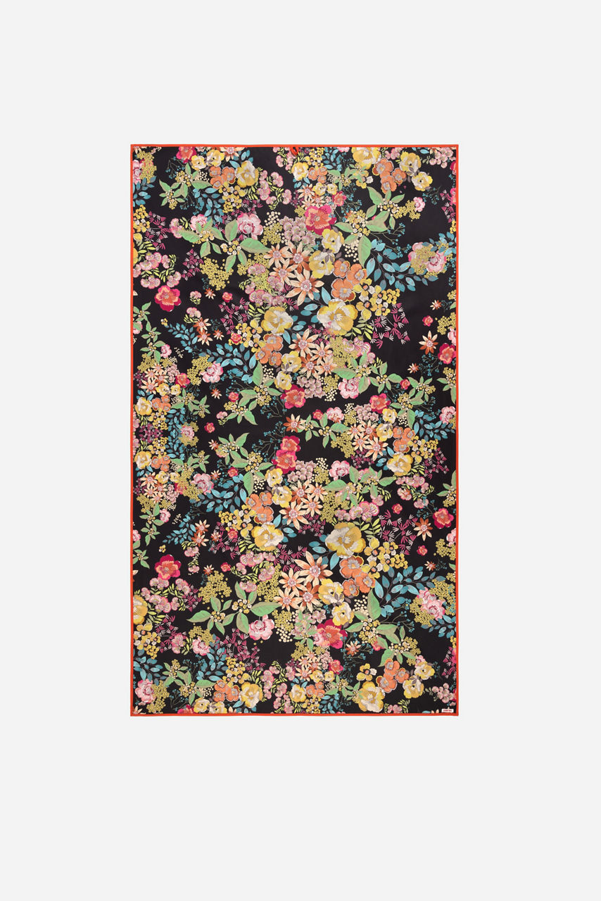 Perfect for tropical getaways and poolside lounging, the Millo Beach Towel is a vibrant take on a functional vacation essential. This towel is crafted from an ultra-soft quick-drying material and features an elegant combination of florals set against a black backdrop and a brown and black pattern on the reverse side. Carry this towel in the matching drawstring bag or slip it into a large beach tote.