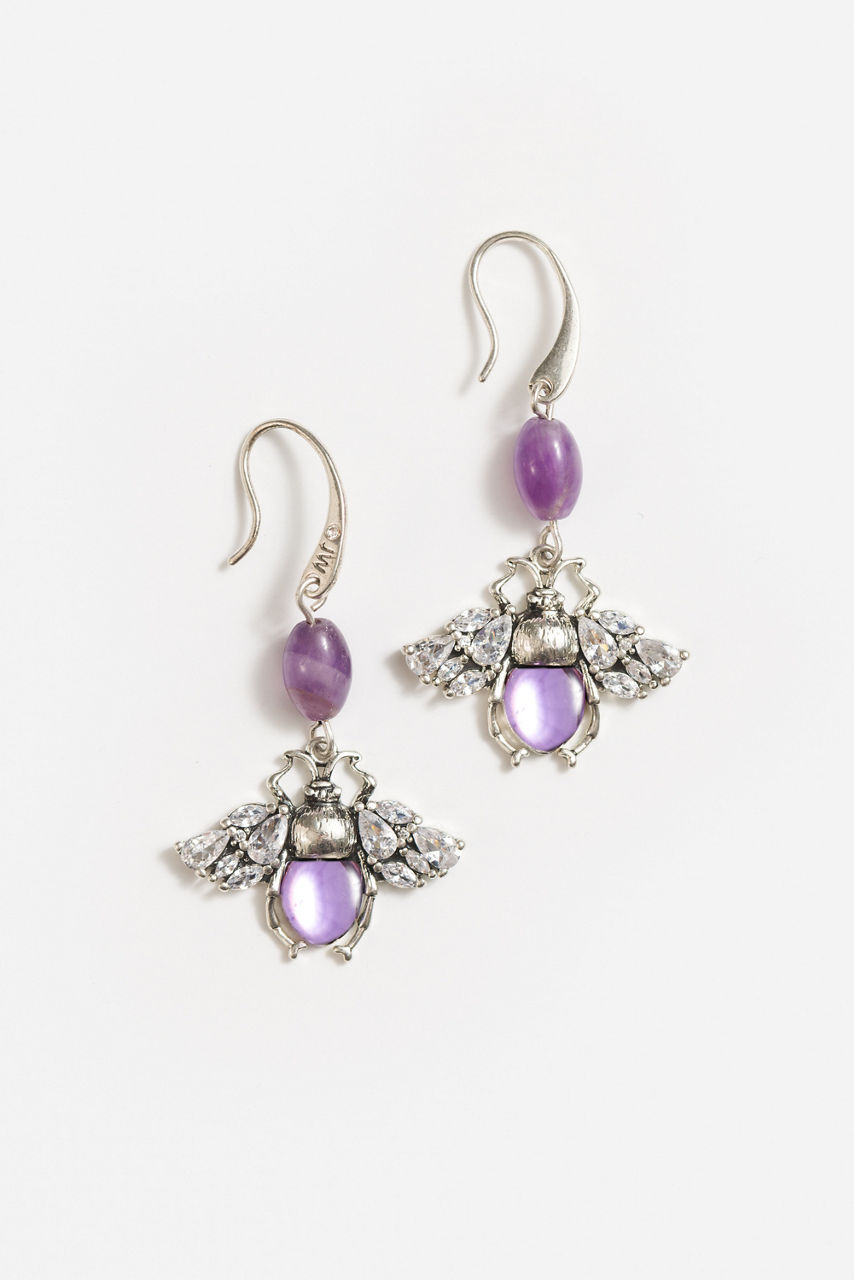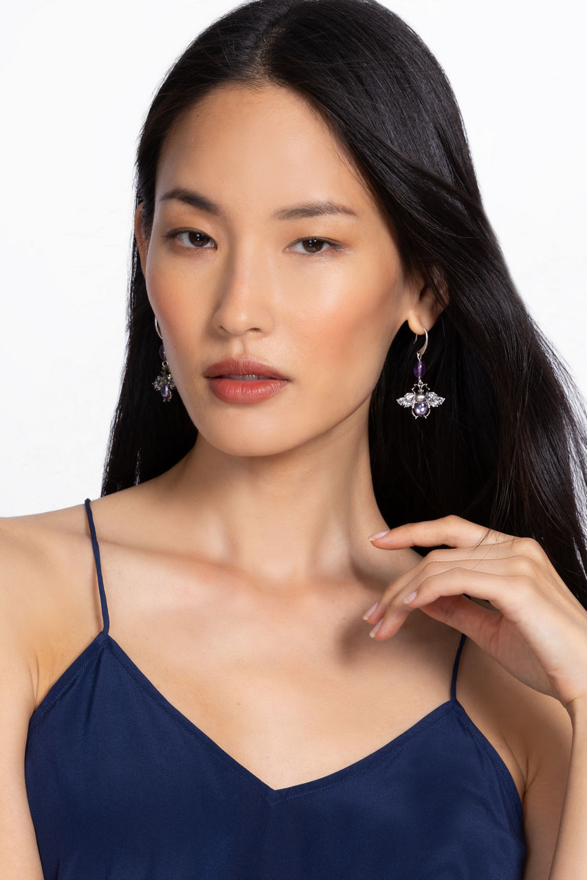 Uniquely crafted to celebrate nature's small miracles, the Mini Critter Charm Drop Earrings feature a stunning silver-tone bee pendant. Designed with fish hook earring backs and enhanced with vibrant blue and purple stones, these whimsical earrings add a charming touch to any look. Pair with the Critter Charm Necklace for a perfectly coordinated jewelry look.