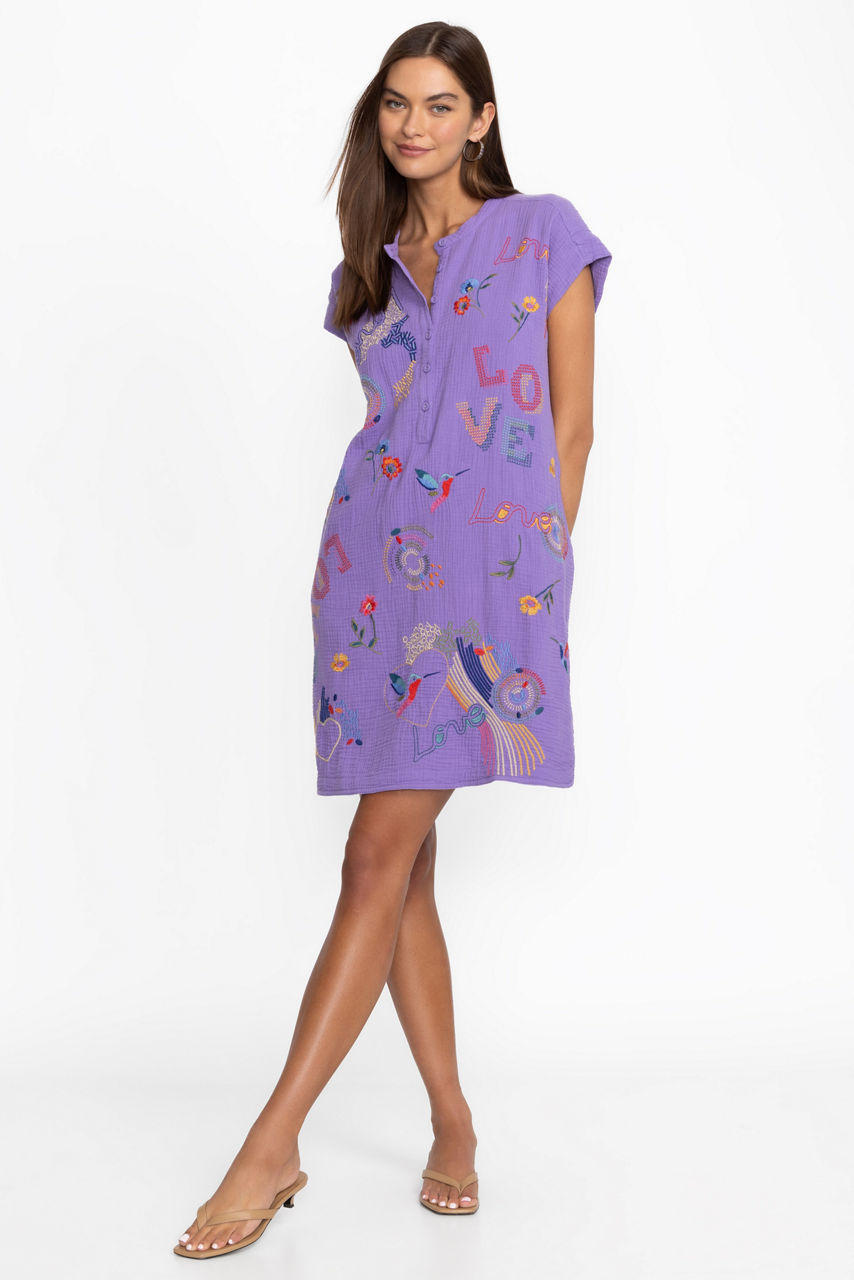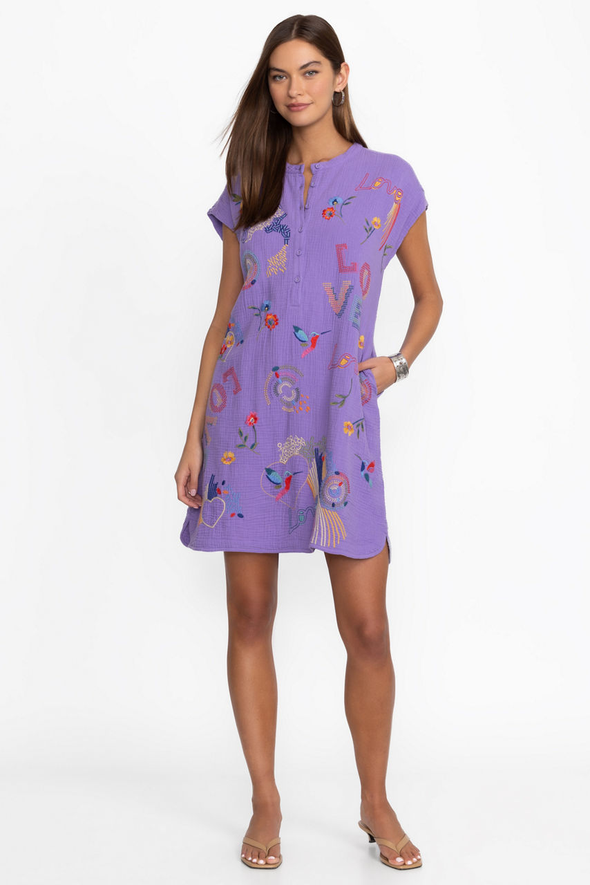 Crafted from 100% breathable cotton, the Mishti Dress is the perfect combination of comfort and style. Featuring a henley neckline and dolman sleeves, this relaxed-fit dress is embellished with bold placement embroidery and finished with pockets at the side seams. Pair with fashion sneakers and a trendy crossbody bag for a day of sightseeing.