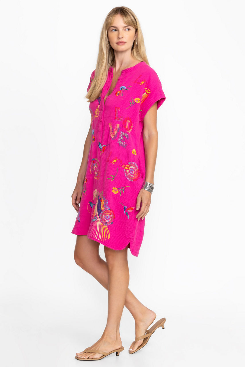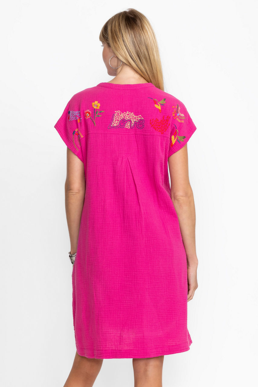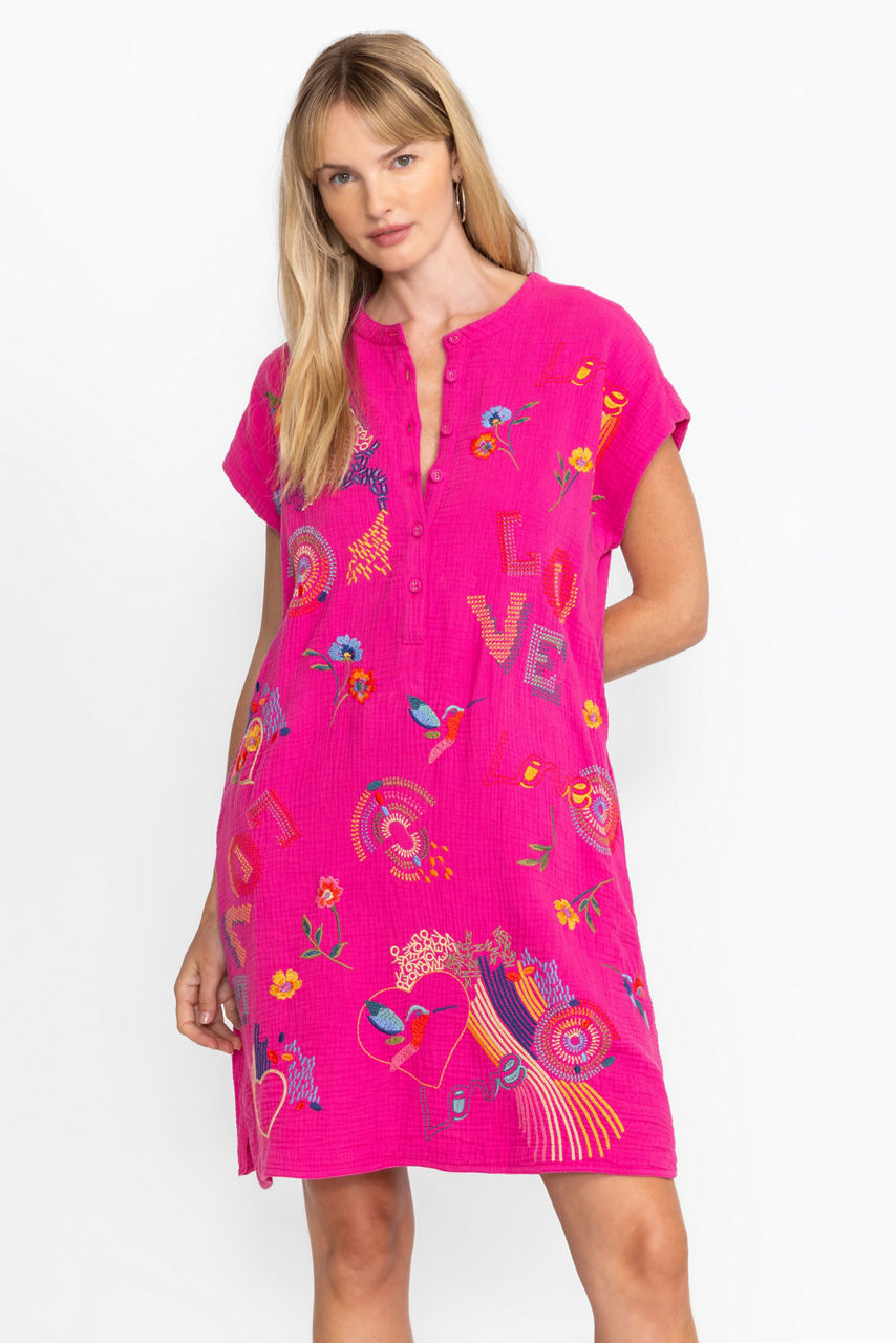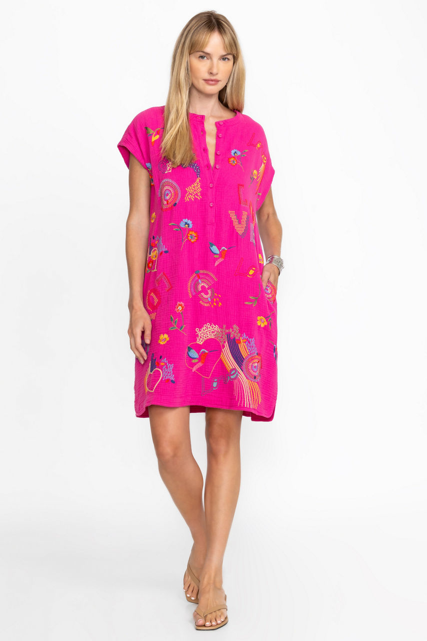 Crafted from 100% breathable cotton, the Mishti Dress is the perfect combination of comfort and style. Featuring a henley neckline and dolman sleeves, this relaxed-fit dress is embellished with bold placement embroidery and finished with pockets at the side seams. Pair with fashion sneakers and a trendy crossbody bag for a day of sightseeing.