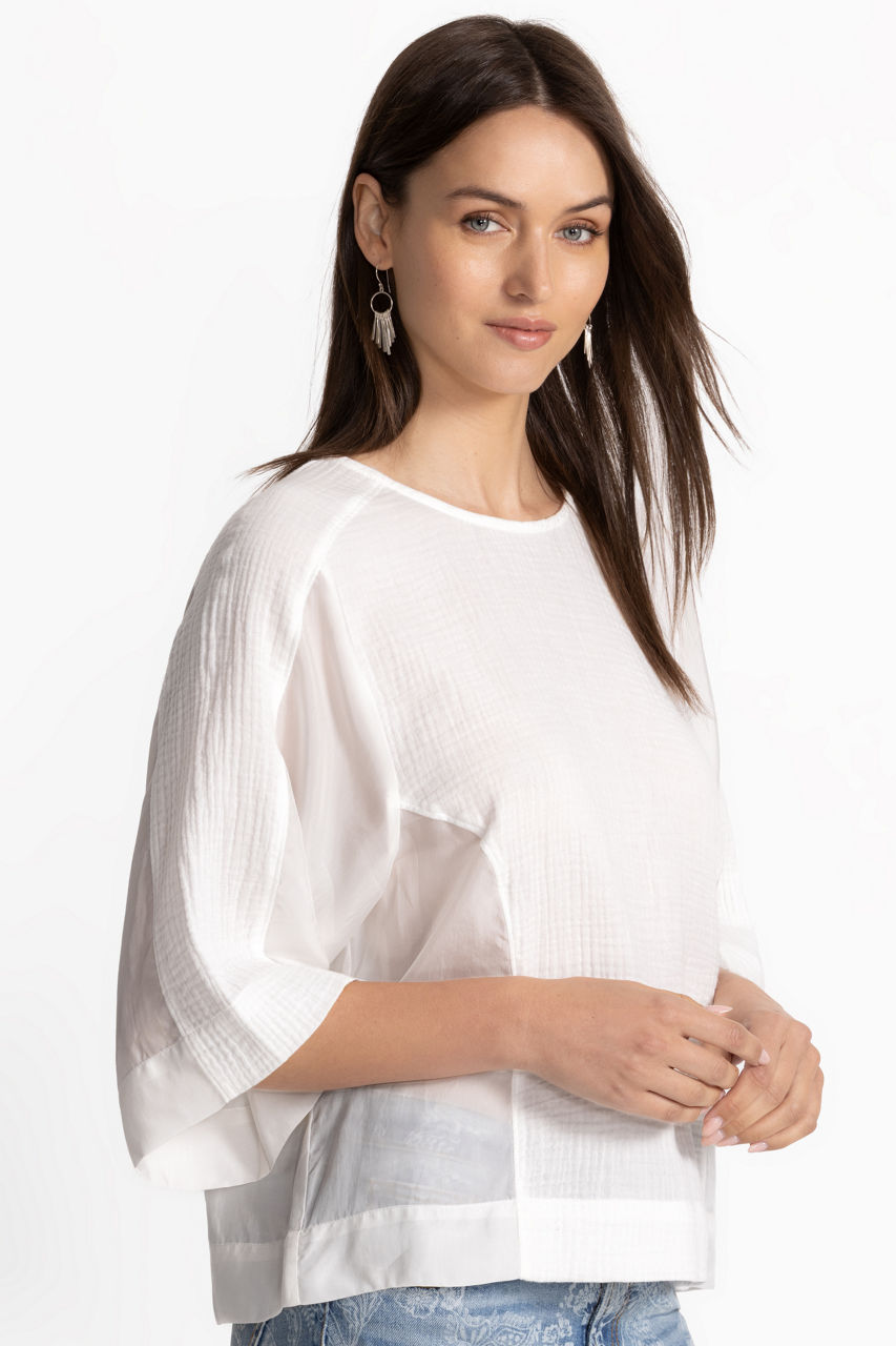 Crafted from 100% breathable cotton, the Mixed Media Drop Shoulder Top is accented with contrasting panels. Designed with a rounded neckline and drop shoulders, this unique top is finished with a keyhole detail at the back. Pair with denim trousers and casual loafers for a relaxed weekend with family and friends.
