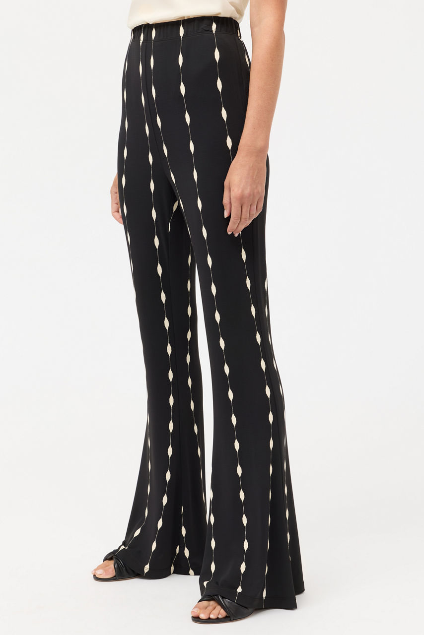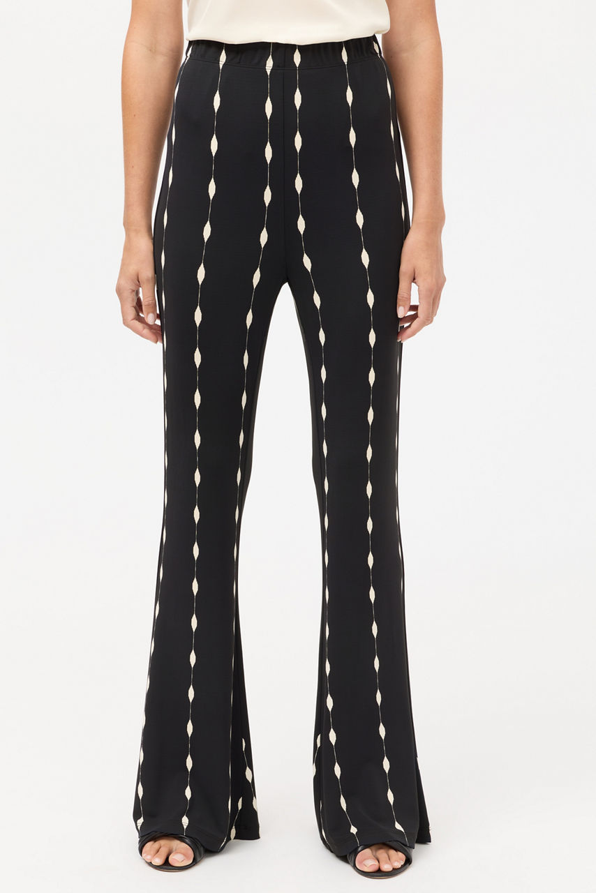 Embellished with a mesmerizing pattern in contrasting black and white tones, the Mollee Flare Pant is equal parts comfort and style. Designed with an elastic waist and flared legs, these bold pants are a unique wardrobe addition. Pair with the Demi V-Neck Tunic and colorful flats for an elevated casual look.