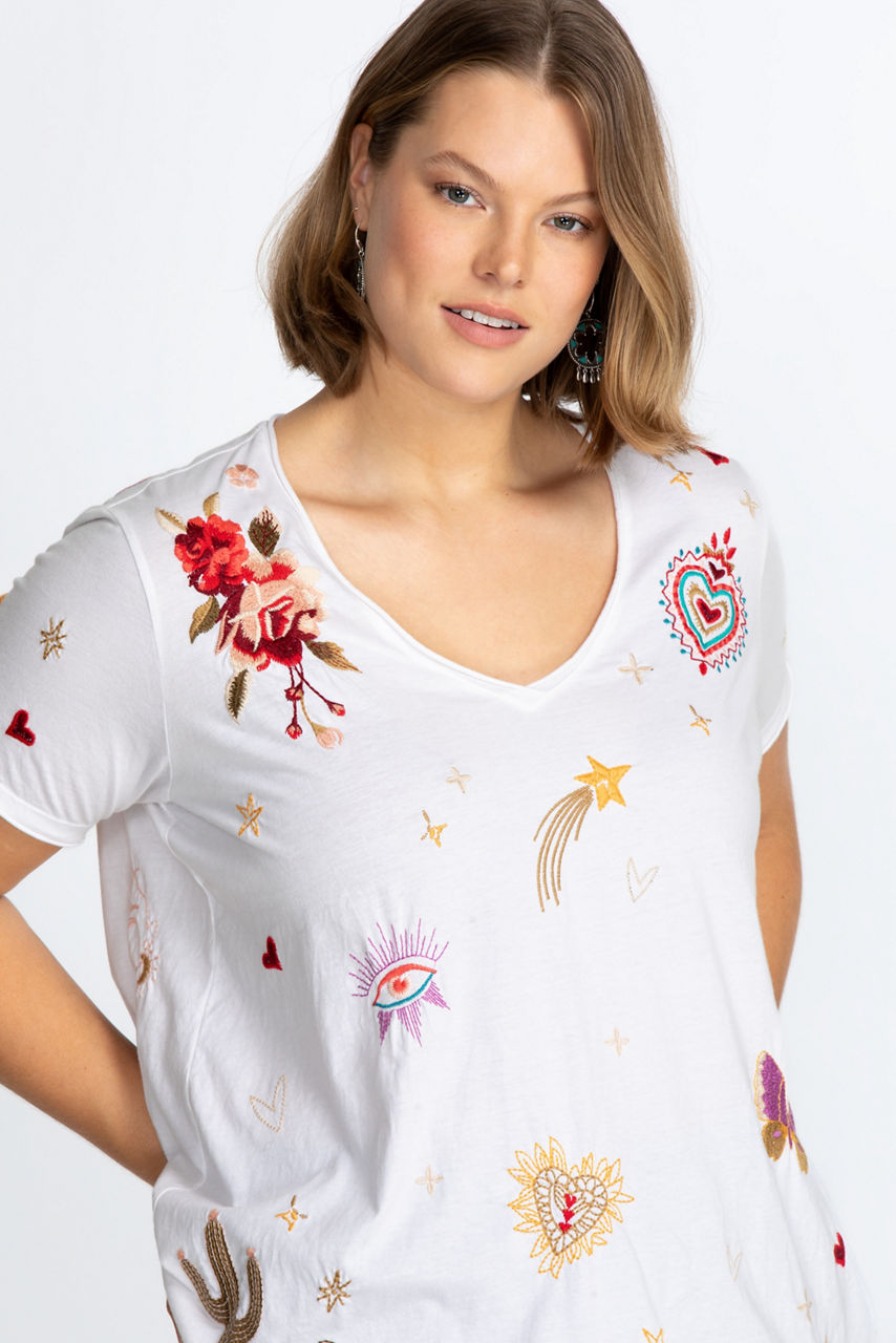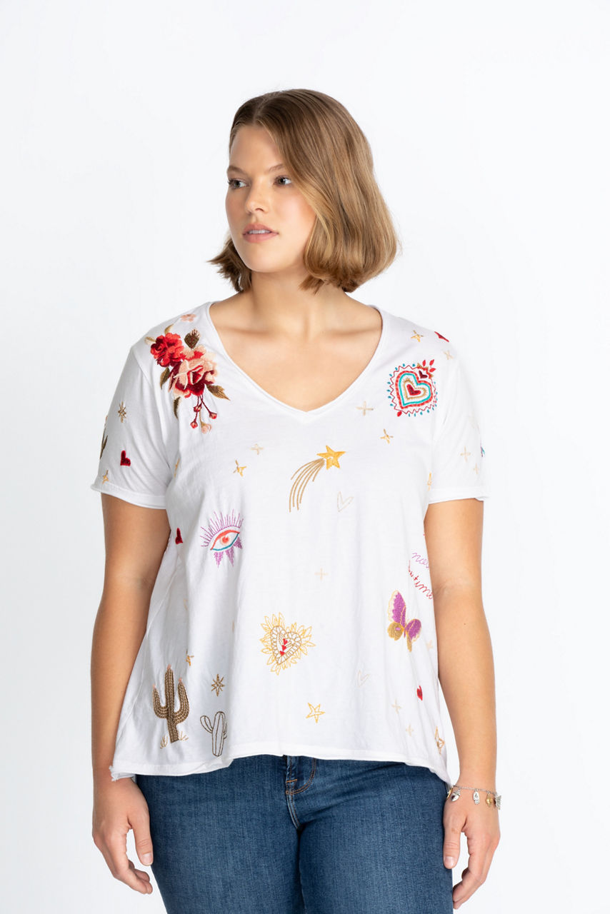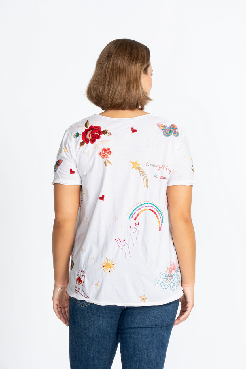 Our Monroe Everyday Tee features whimsical patterns, a beautiful color story, and an ultra-comfortable design to give you a new spring and summer staple. This top is perfect for days exploring a nearby park or meeting up with your friends for coffee. Pair this piece with our Monroe Paperbag Short and some embroidered sneakers to get a laid-back yet unforgettable look.