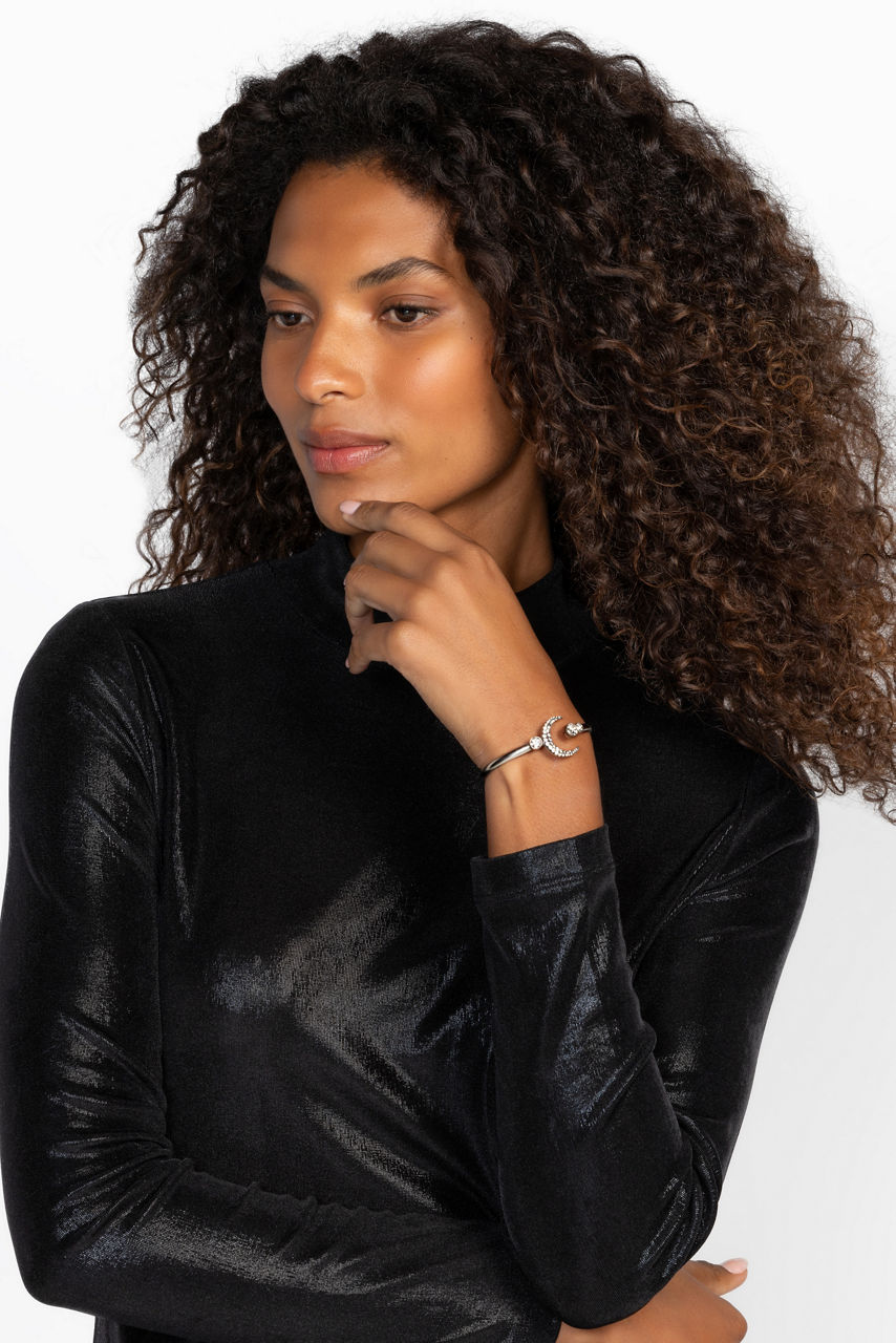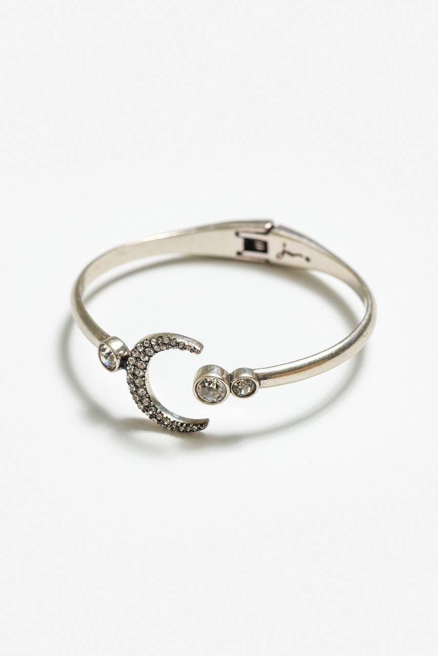 Celebrating the beauty of the night sky, the Moon Phase Bracelet offers a glittering depiction of celestial bodies. Featuring a hinged back and a decorative closure with the Moon at its center, this lovely silver-tone bracelet is accented with sparkling stones. Pair with a little black dress and metallic heels for an inspiring evening look.