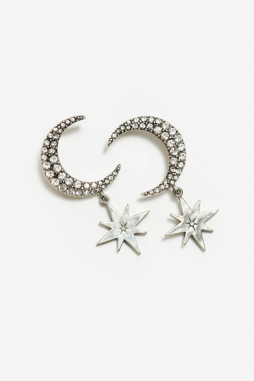A glittering reminder of the expanse of the universe, the Moon Phase Earrings are crafted in a brilliant silver-tone. Featuring a stone encrusted waning moon at their apex, these stunning earrings are finished with a single star suspended from the base of the moon. Pair with a classic black dress and the Moon Phase Bracelet for a perfectly coordinated evening look.
