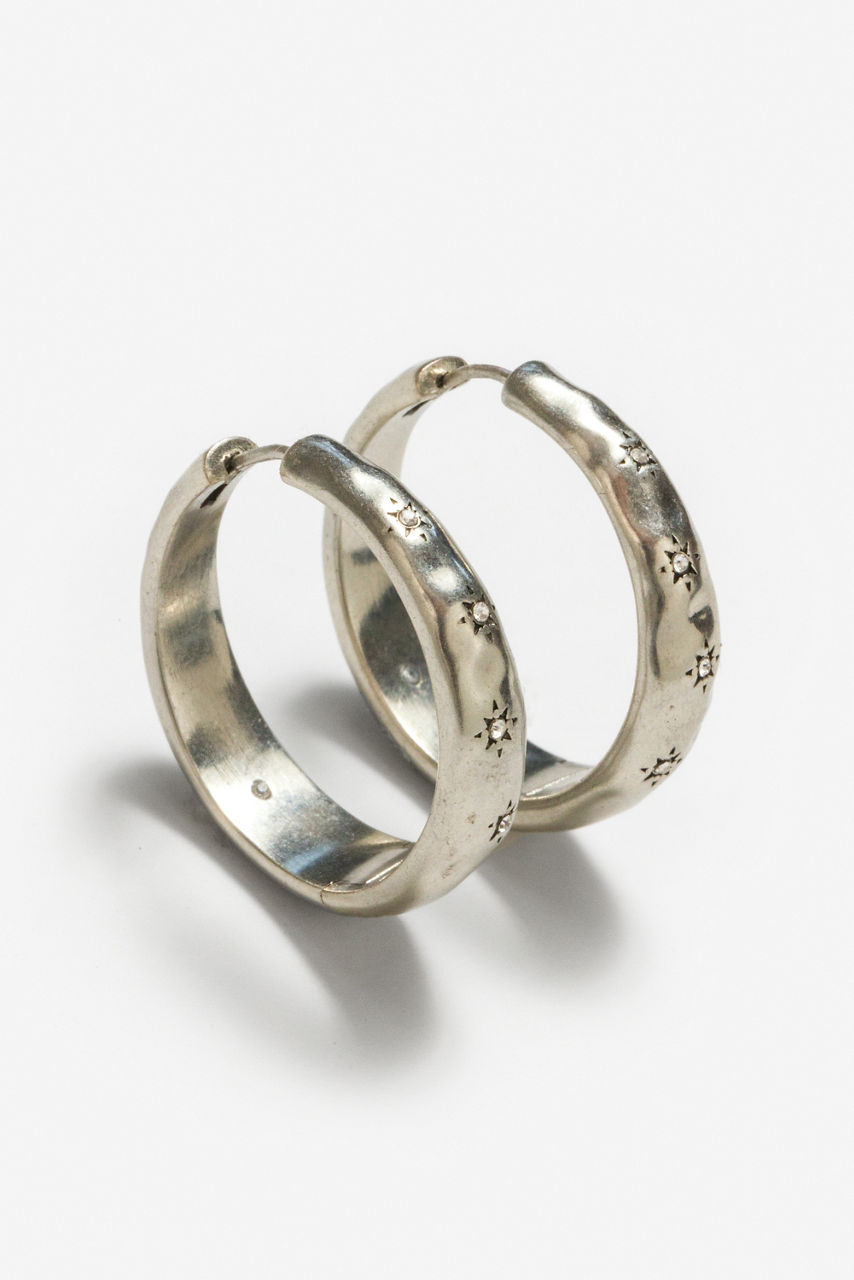 Crafted from silver-tone brass, the Moon Phase Hoop Earrings add a touch of shine to your look. Featuring a wide hoop embellished with intricate moon and star details, these casual earrings are finished with a joint catch closure. Pair with the Moon Phase heart Necklace and Cuff Bracelet for a perfectly coordinated jewelry look.