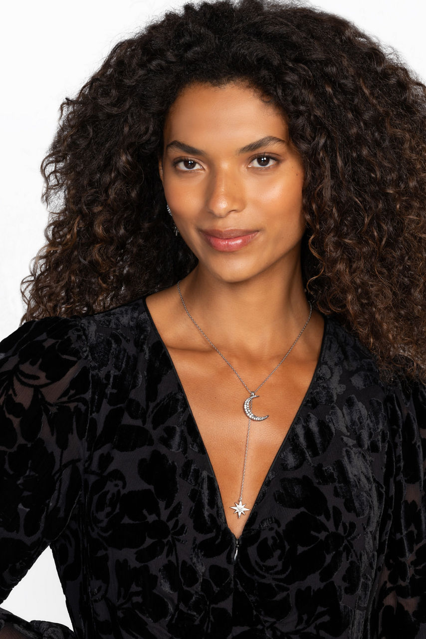 Equal parts delicate and stunning, the Moon Phase Pendant Necklace offers a glittering reminder of the vastness of the universe. Featuring a silver-tone chain leading to intricately crafted celestial bodies thoughtfully suspended to create continual movement, this necklace is finished with a clasp closure and chain extender for a customizable look. Pair with the Moon Phase Earrings and Bracelet for a perfectly coordinated accessory look.