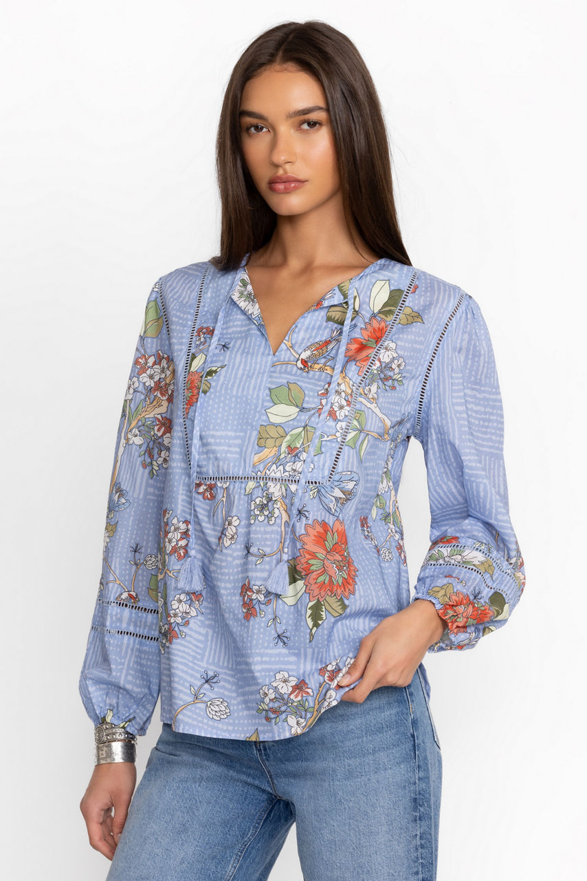 MOSAIC CURVED HEM PRAIRIE BLOUSE
